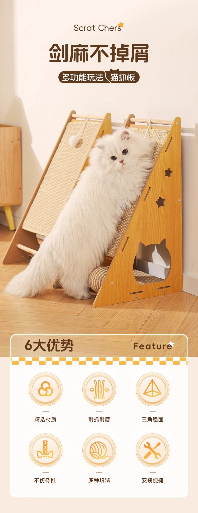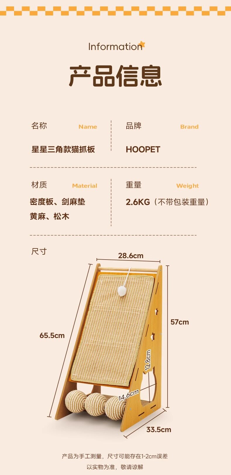 【名称】:HOOPET星星三角款抓板(带球/不带球)