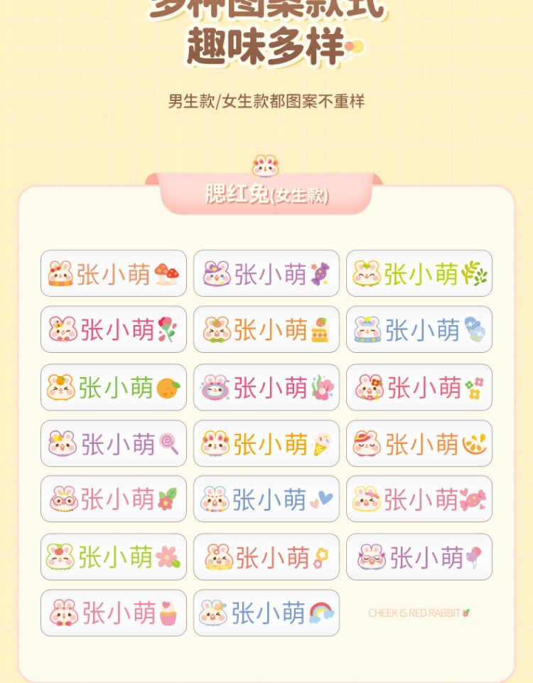 • 핑크래빗 (방수 네임스티커 50매) [비고명]