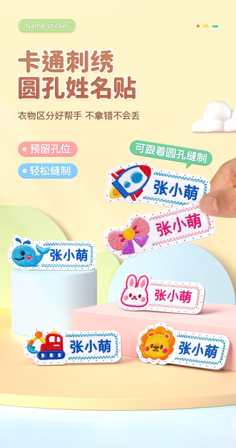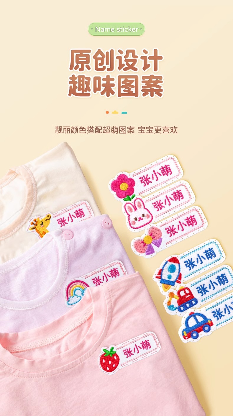 유치원 이름 스티커는 바느질 가능, 방수 및 바느질 가능, 어린이 이름 스티커, 자수, 유아 교복, 유치원 용품스토어 가기