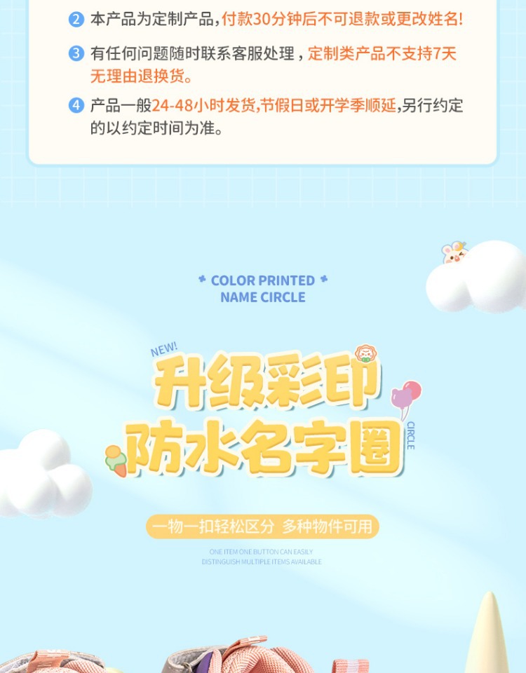 • 슬릿홀 포함 12개 (여아모델) + 방수스티커 100개 + 책가방 태그 꼭 [주문 비고 + 이름]에 기재해주세요