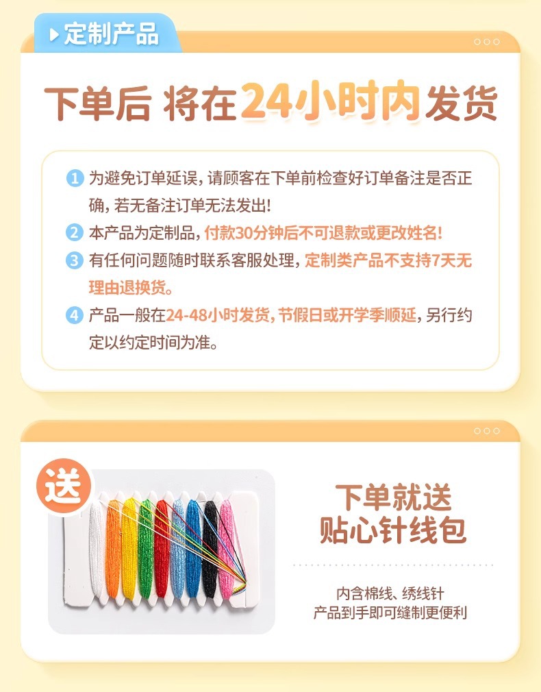 • 12개의 솔기 구멍이 있습니다(여아 모델)(바느질 키트 포함) 반드시 [주문 비고 + 이름]을 확인하세요.