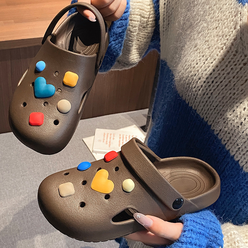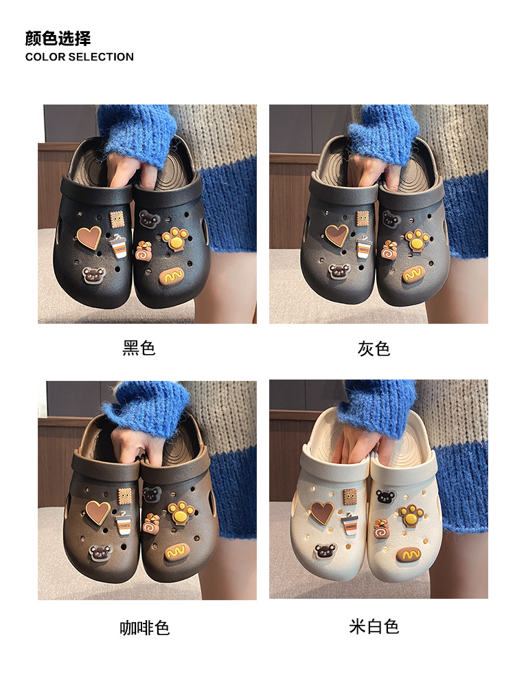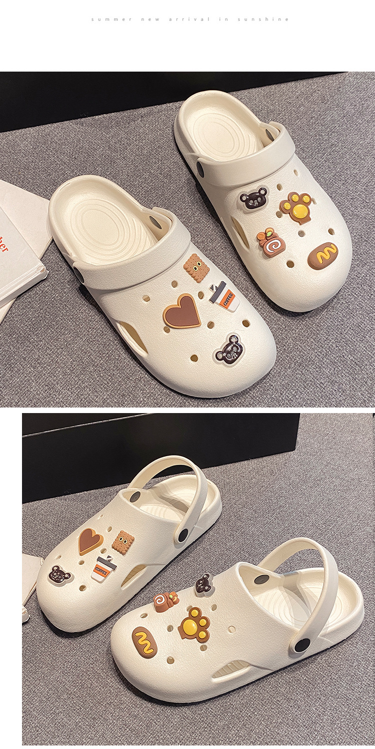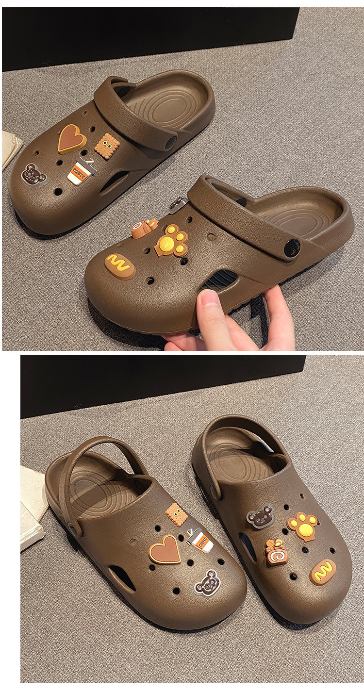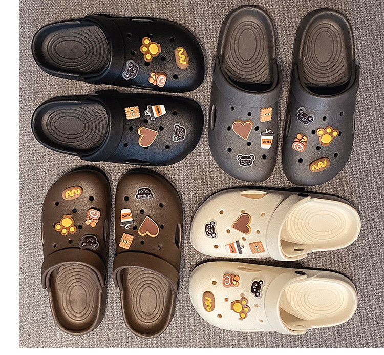부드러운 밑창, 가볍고 착용 가능, 브라운 러브 베어 나막신, 여성용 바오터우 홈 슬리퍼, 미끄럼 방지 욕실 목욕 슬리퍼