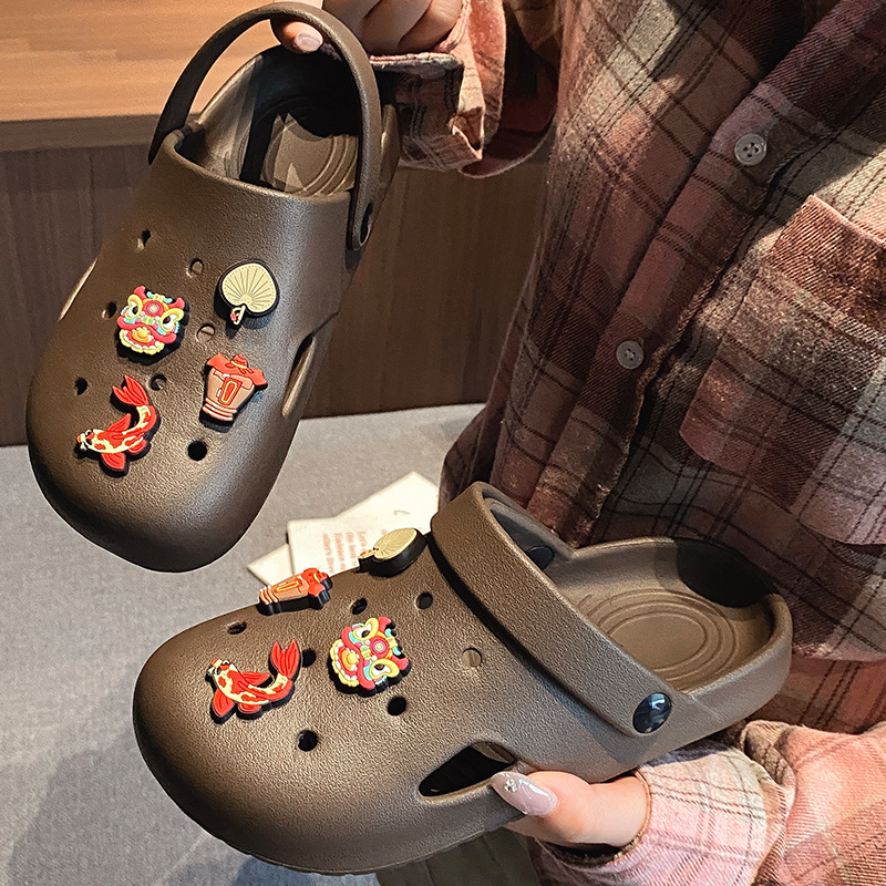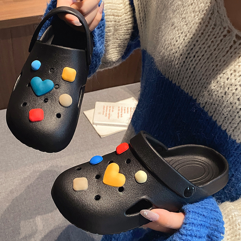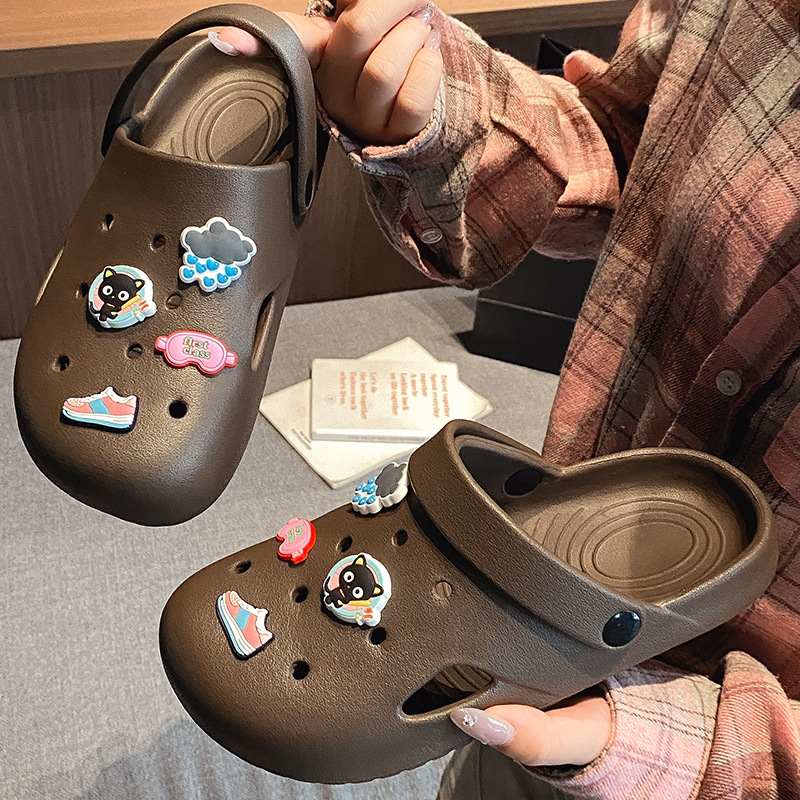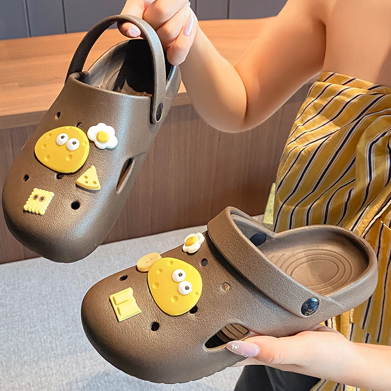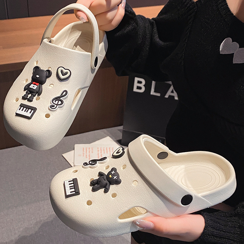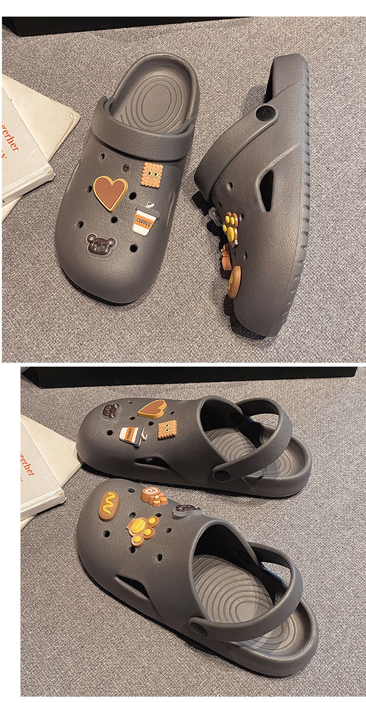 부드러운 밑창, 가볍고 착용 가능, 브라운 러브 베어 나막신, 여성용 바오터우 홈 슬리퍼, 미끄럼 방지 욕실 목욕 슬리퍼