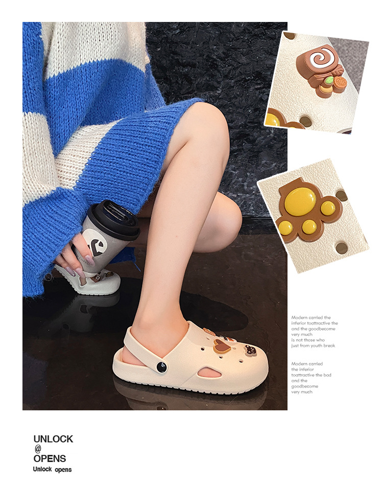 부드러운 밑창, 가볍고 착용 가능, 브라운 러브 베어 나막신, 여성용 바오터우 홈 슬리퍼, 미끄럼 방지 욕실 목욕 슬리퍼스토어 가기