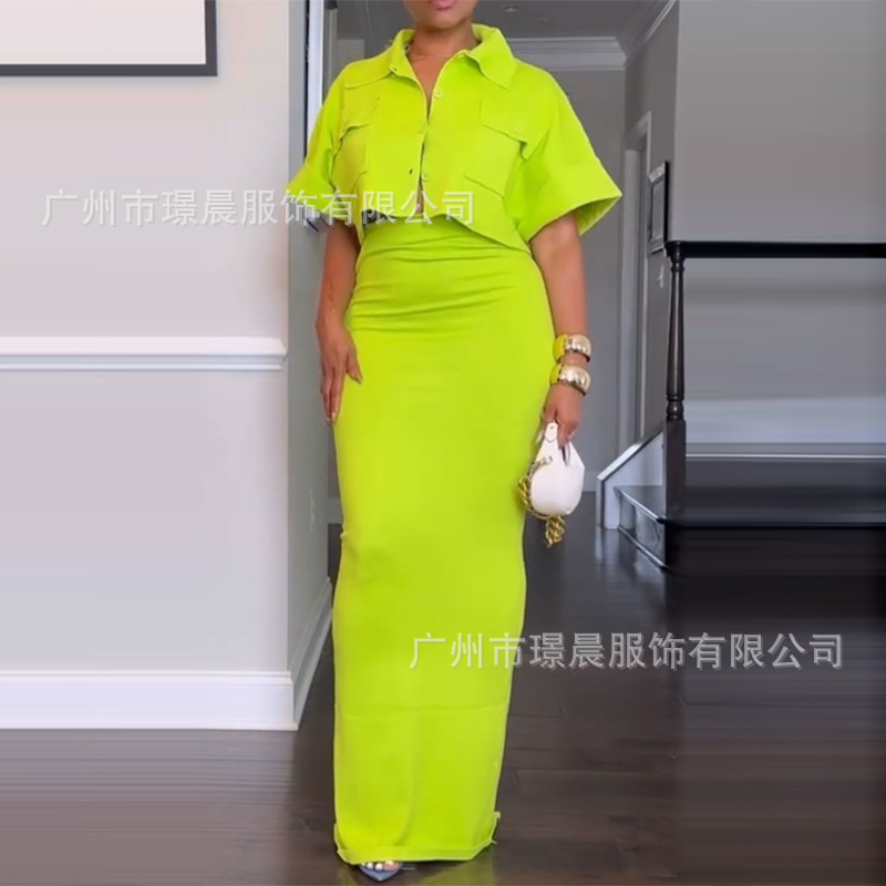 재고 있음 Amazon Cross-Border 2025 여름 유럽 및 미국 대외 무역 여성 신상 짧은 탑 힙 스커트 여성용 투피스 세트