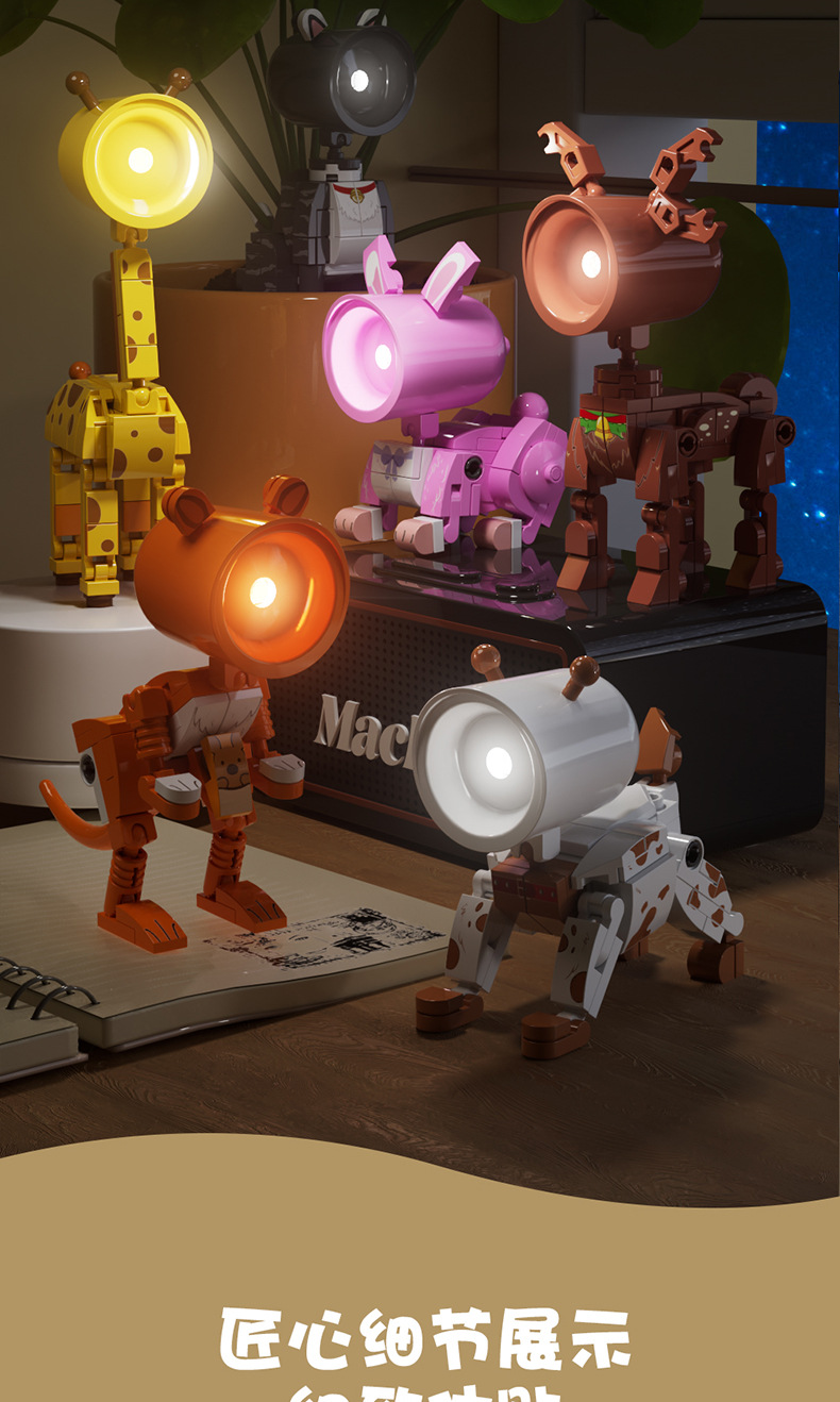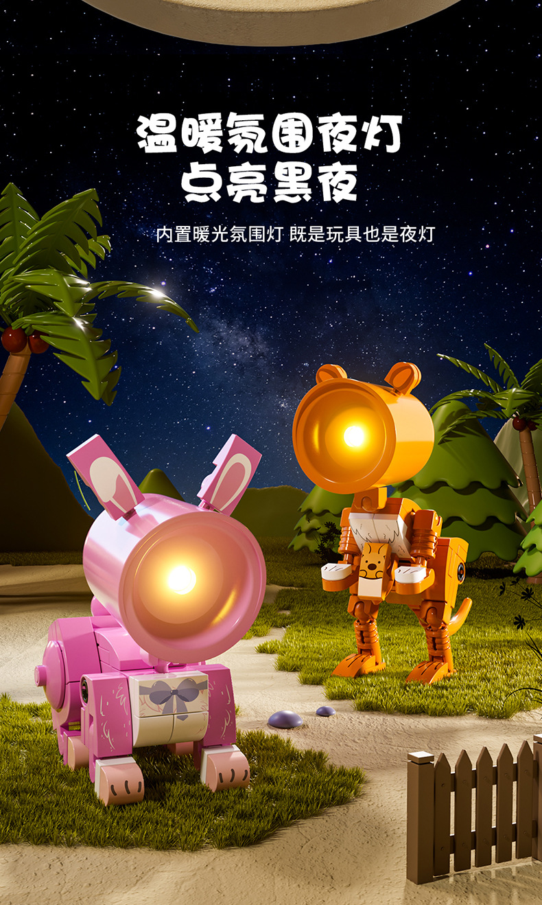사각형 오렌지 야간 조명 빌딩 블록 강아지 새끼 고양이 기린 캥거루 토끼 조립 모델 어린이 조립 장난감 선물