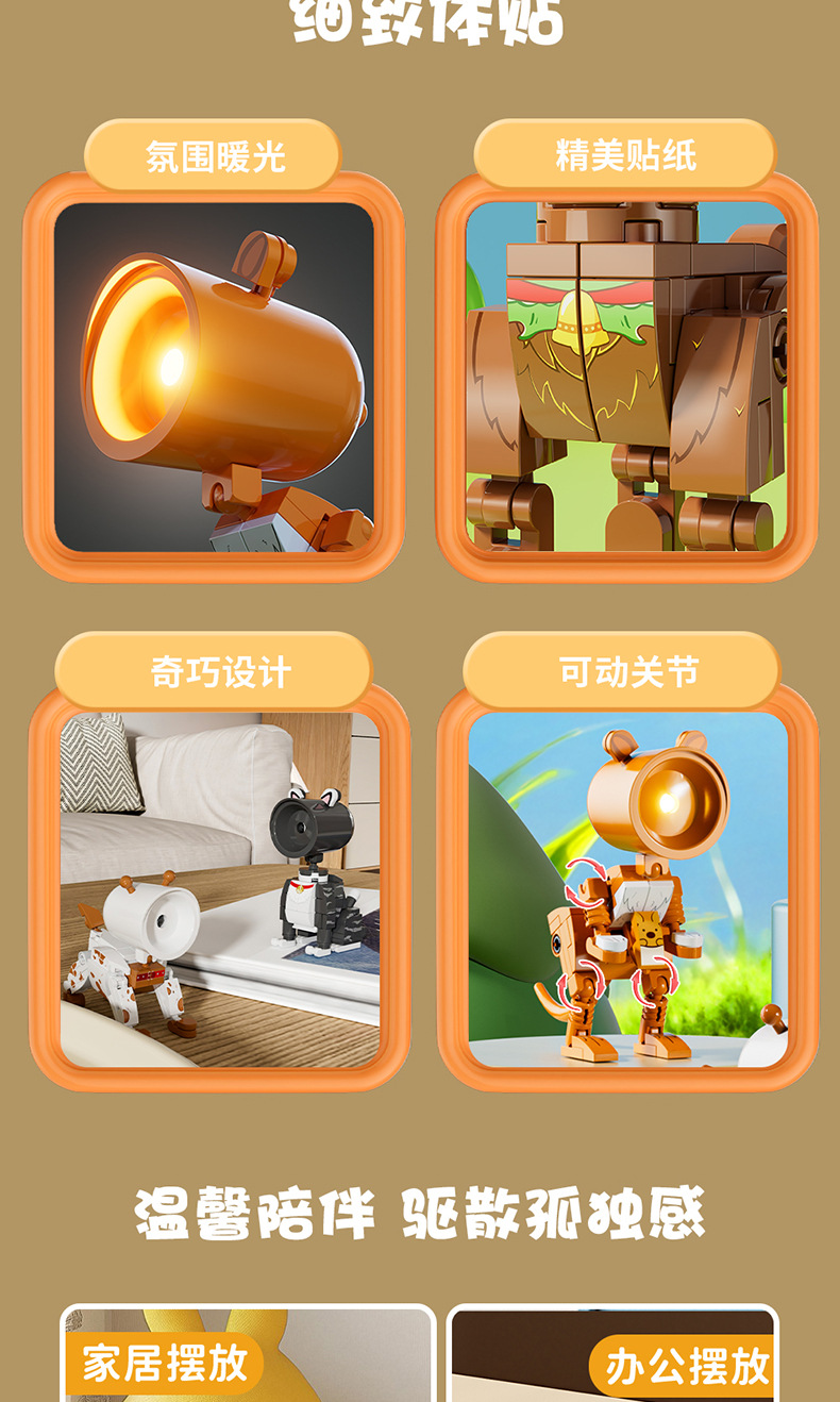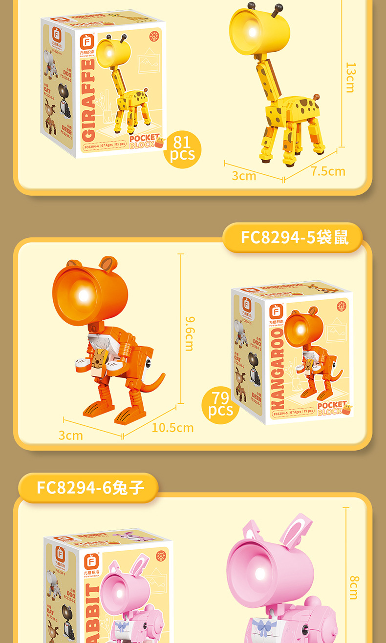 사각형 오렌지 야간 조명 빌딩 블록 강아지 새끼 고양이 기린 캥거루 토끼 조립 모델 어린이 조립 장난감 선물스토어 가기