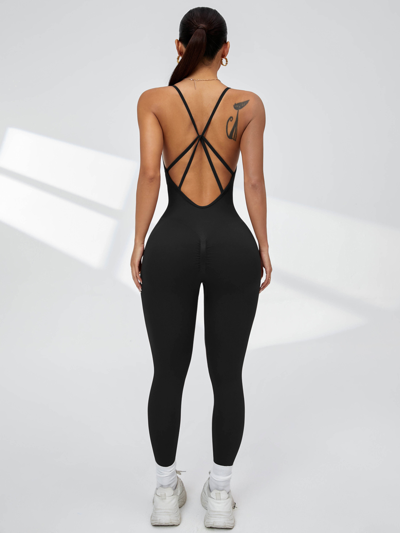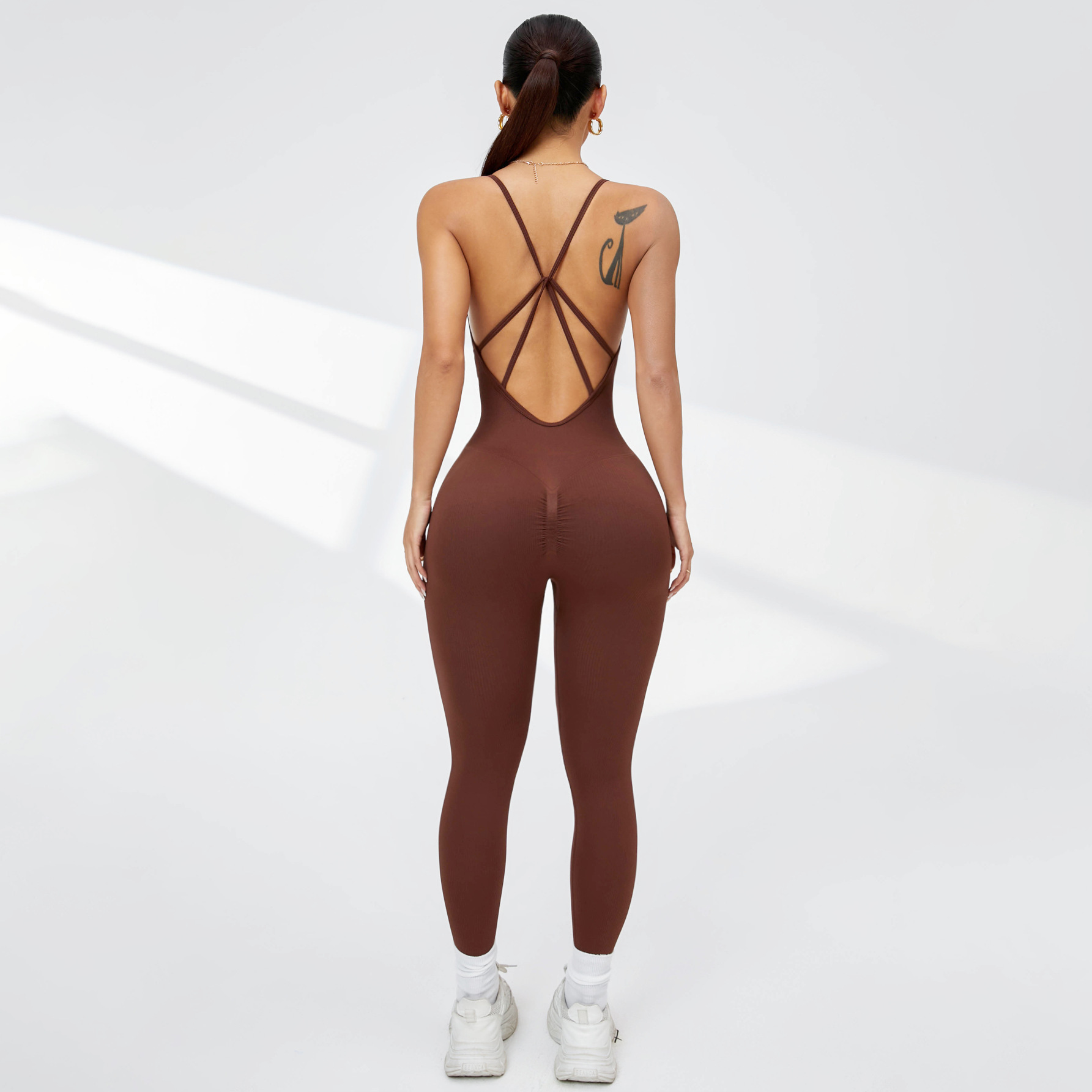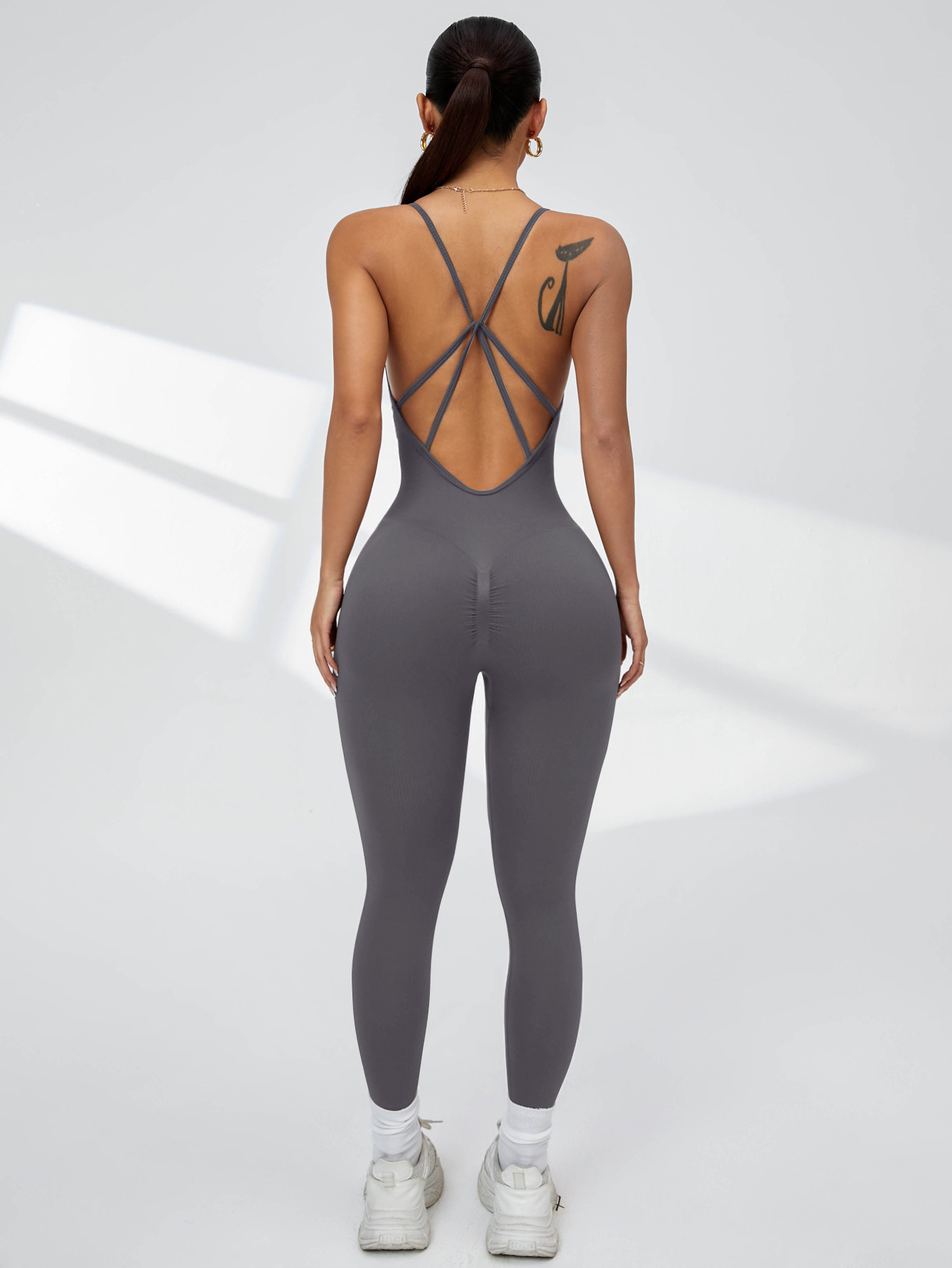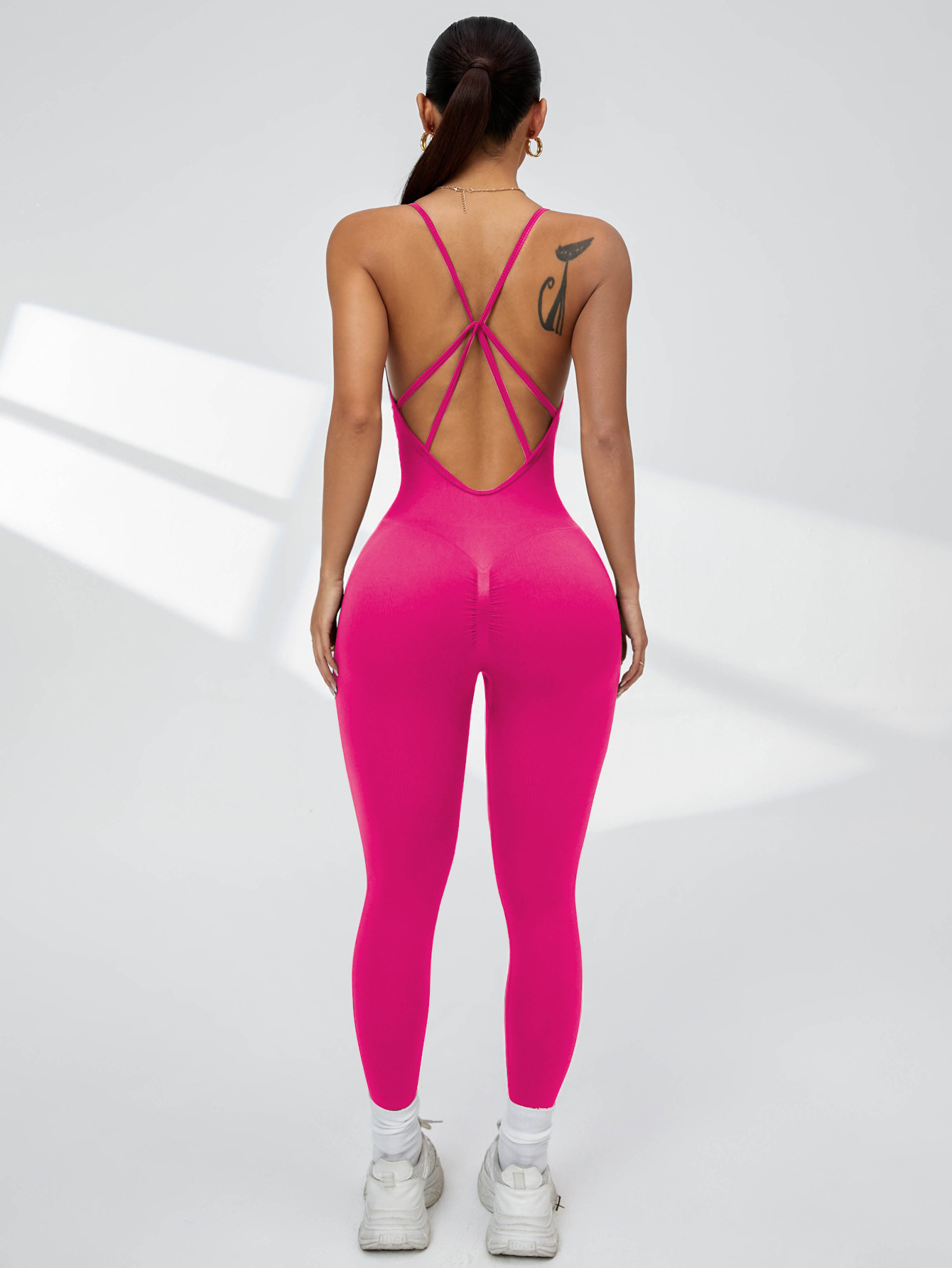 유럽과 미국의 섹시한 원피스 요가복, 복숭아 엉덩이, 속건성, 크로스백, 가슴 패드 없음, 타이트한 피트니스 바지, 점프수트스토어 가기