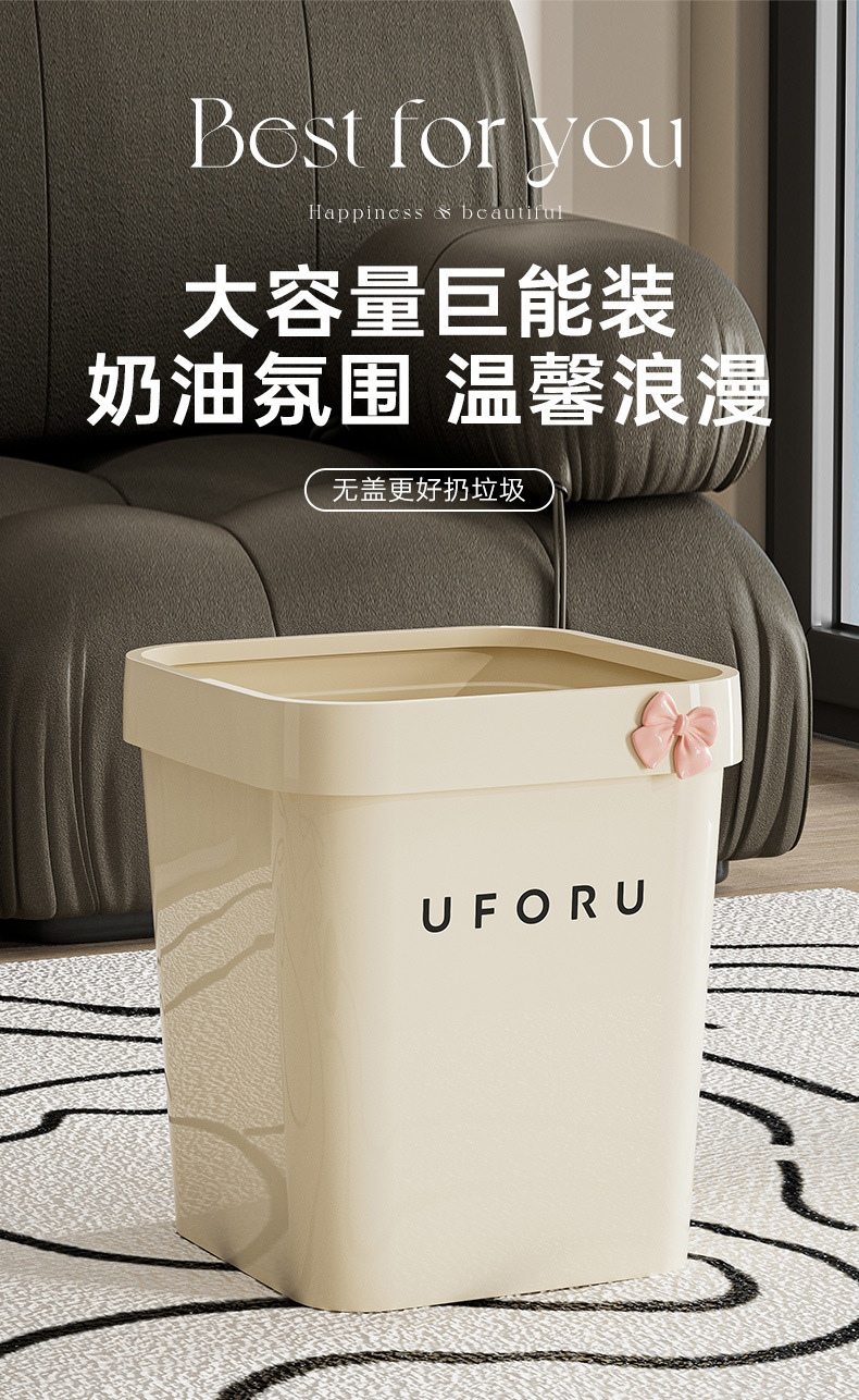 가정용 간이 쓰레기통, 고급형, 대형 거실, 욕실, 손이 더러워지지 않는 뚜껑 없는 쓰레기통, 압력 링 포함