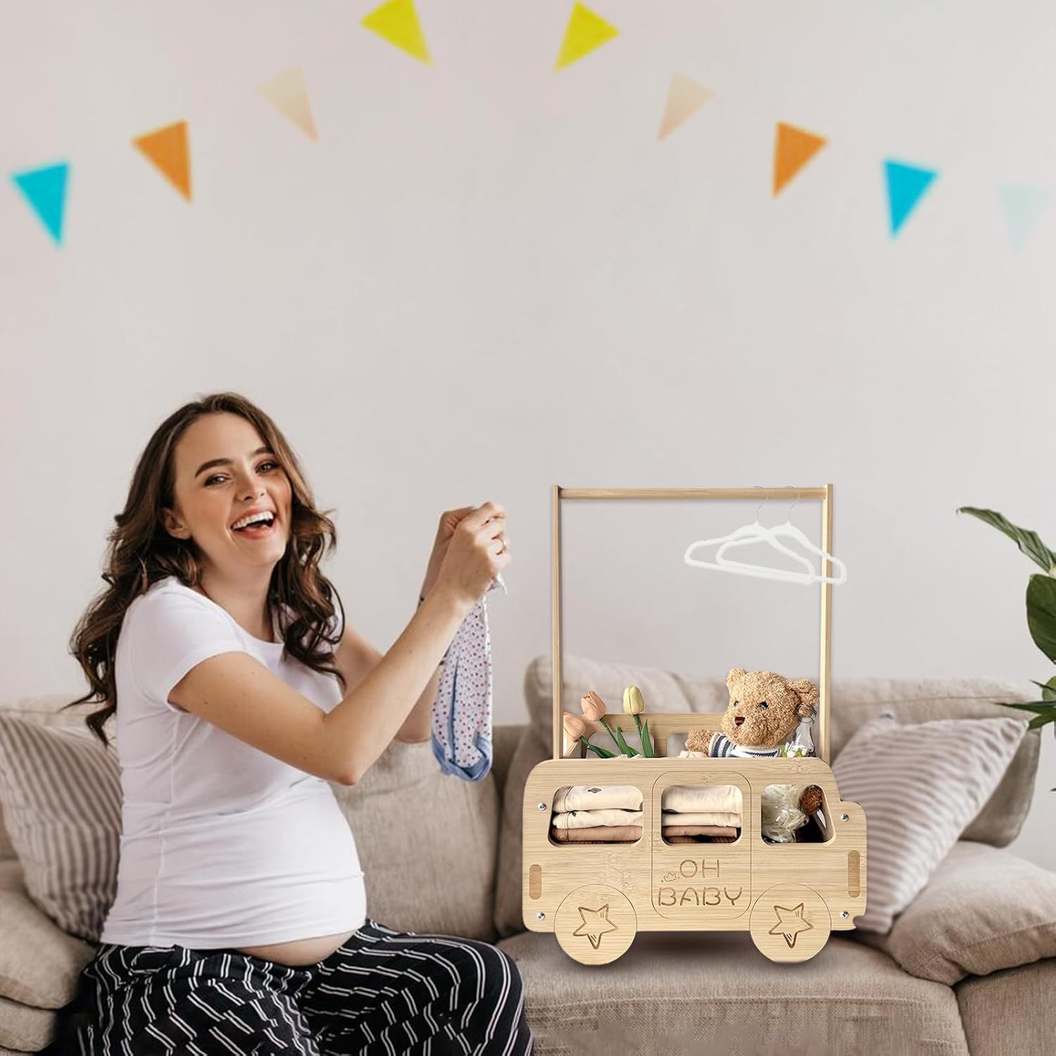 손잡이가있는 크로스 보더 신생아 의류 나무 보관 상자 홈 베이비 샤워 용품 단단한 나무 보관 바구니