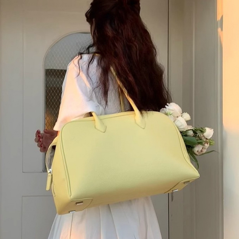 초봄 신상 미니멀 대용량 통근 숄더백 여성용 한국식 밀크옐로우 휴대용 숄더 보스턴백