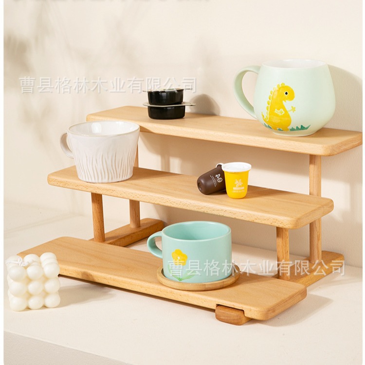 나무 사다리형 데스크탑 수납 선반, 핸드메이드 문화 및 놀이 진열대, 차 세트 수납 선반, 화장품 및 보석 진열대스토어 가기