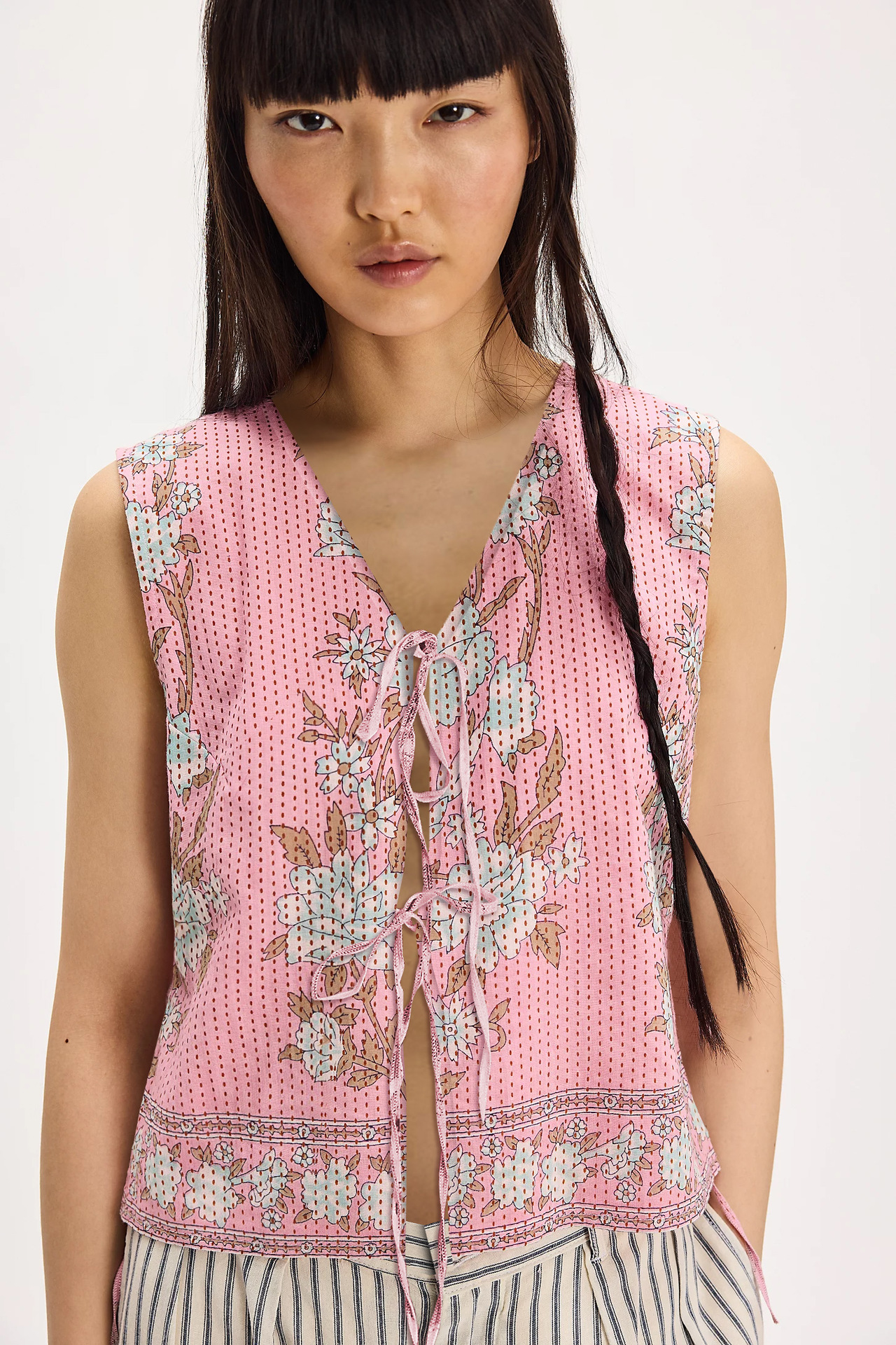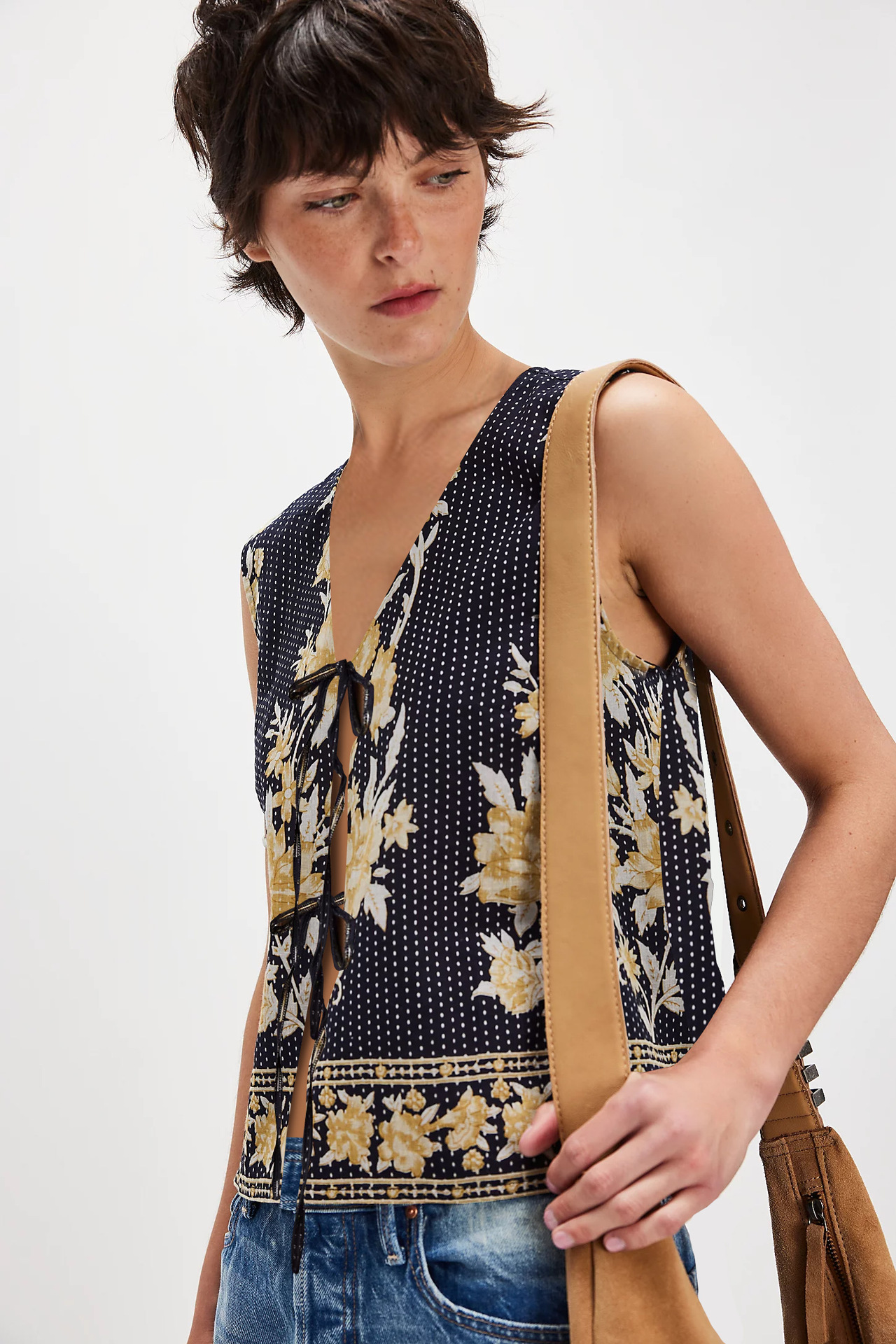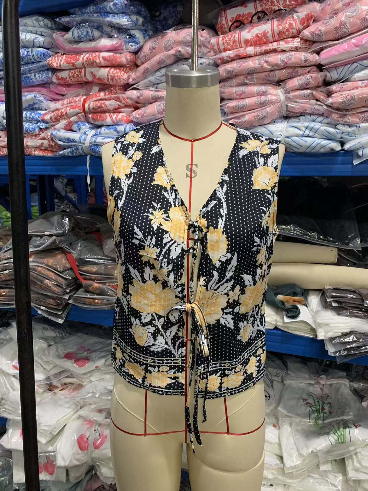 2025 유럽과 미국의 국경 간 새로운 여성상의 아마존 베스트셀러 복고풍 프린트 레이스 업 루즈 여성 조끼스토어 가기
