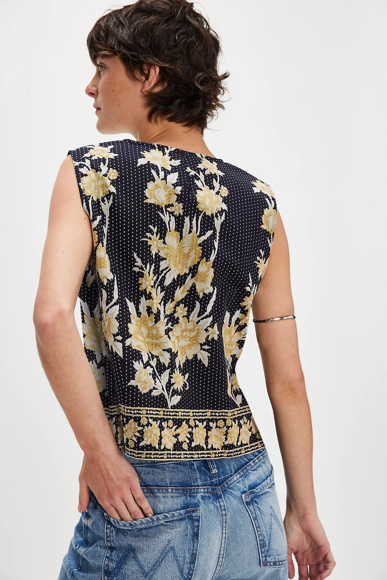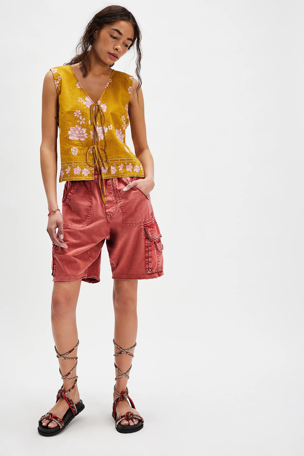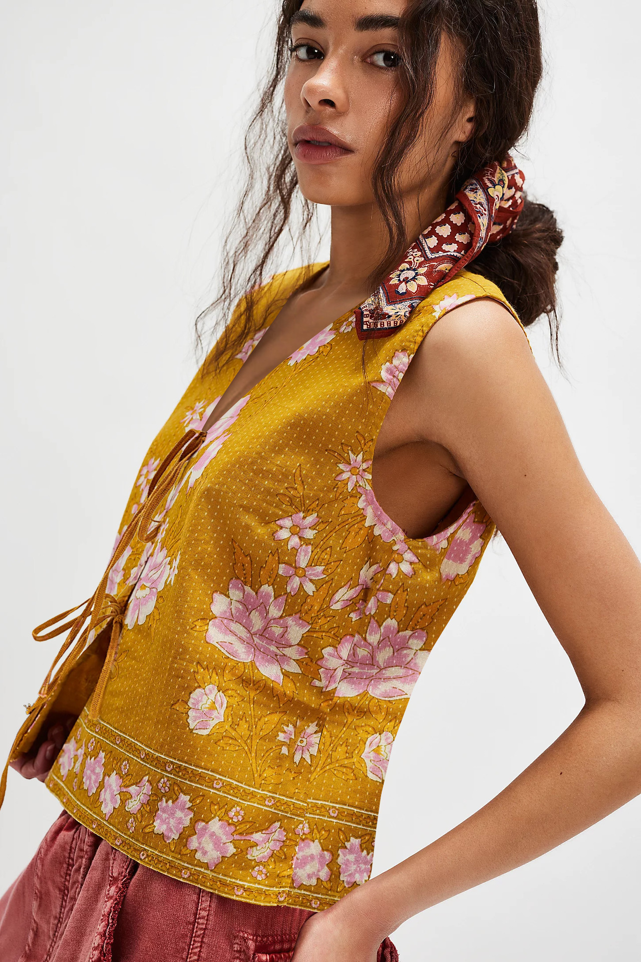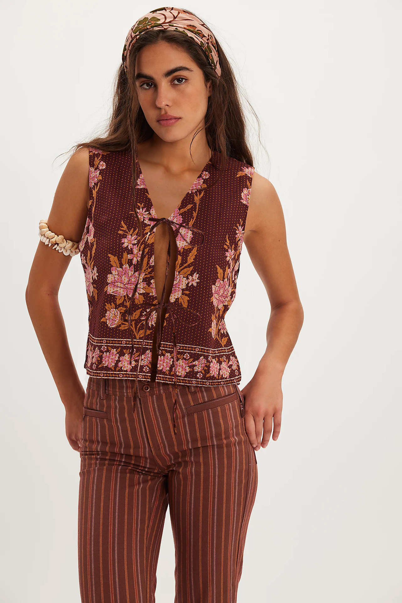 2025 유럽과 미국의 국경 간 새로운 여성상의 아마존 베스트셀러 복고풍 프린트 레이스 업 루즈 여성 조끼스토어 가기