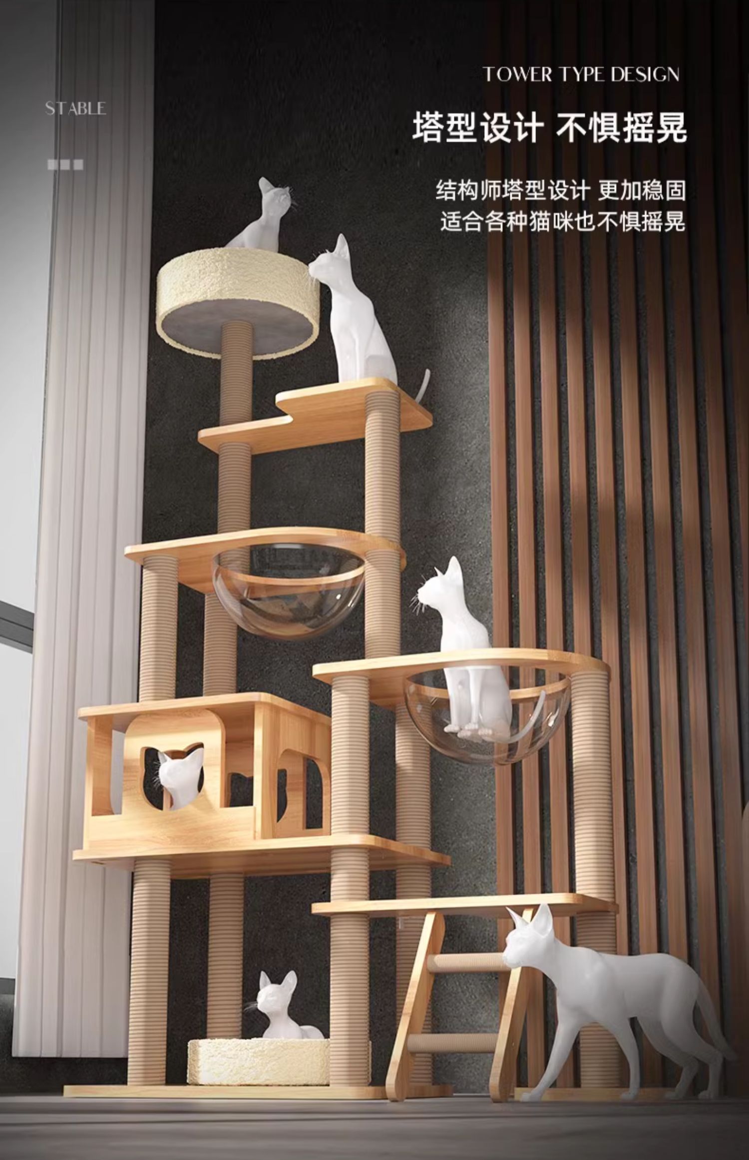 고양이 클라이밍 프레임, 고양이 둥지, 고양이 트리, 일체형 원목 우주 캡슐, 스카이 컬럼, 고양이 스크래치 보드, 클라이밍 프레임, 삼베 고양이 용품스토어 가기