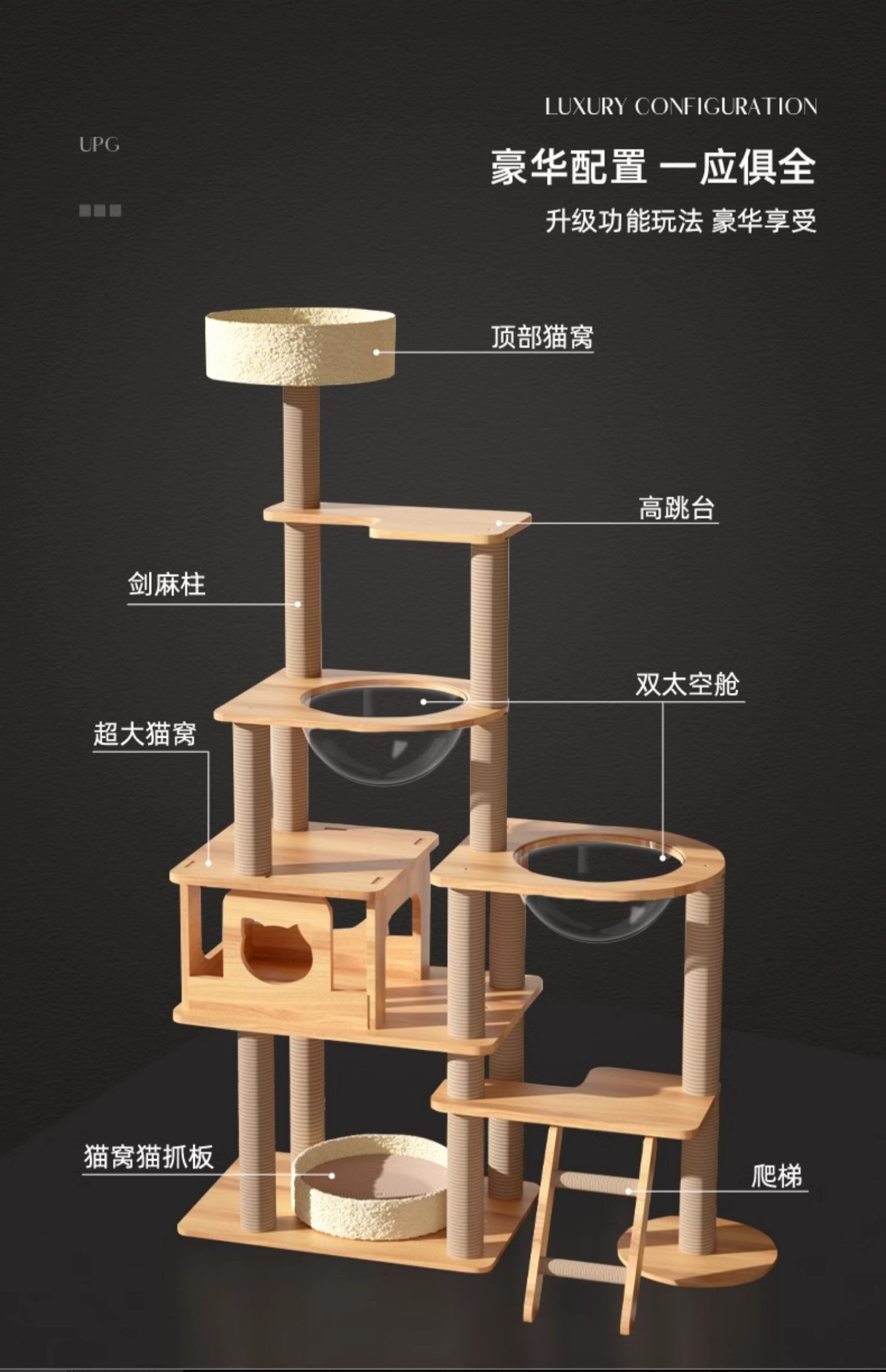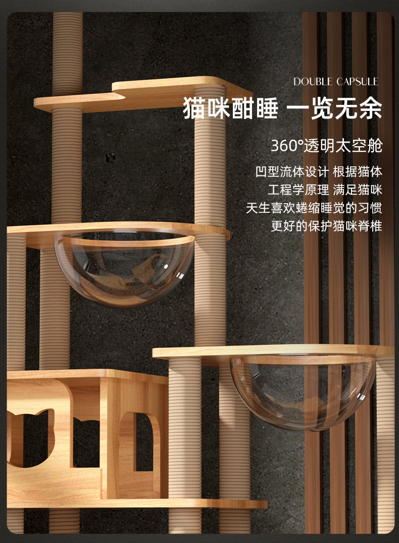 고양이 클라이밍 프레임, 고양이 둥지, 고양이 트리, 일체형 원목 우주 캡슐, 스카이 컬럼, 고양이 스크래치 보드, 클라이밍 프레임, 삼베 고양이 용품