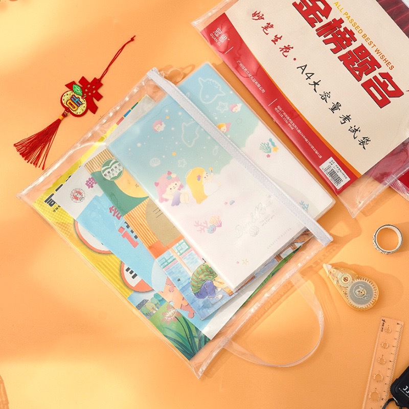 PVC 지퍼 문서 가방 A6 학생 투명 휴대용 시험 연필 가방 방수 문구 보관 가방