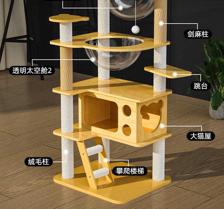 고양이 클라이밍 프레임, 고양이 둥지, 고양이 트리, 일체형 고양이 선반, 대형 스크래치 컬럼, 스카이 컬럼 점프 플랫폼, 우주 캡슐 고양이 용품스토어 가기