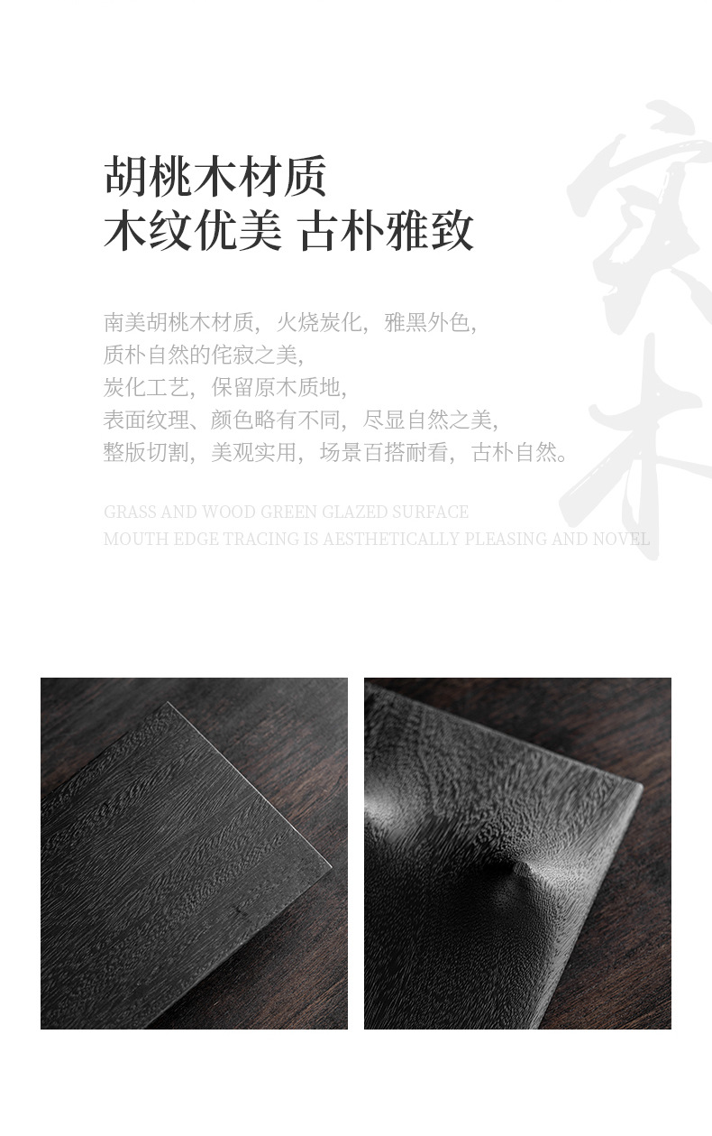 숯불구이 호두나무 건조 티 트레이 직사각형 티 트레이 주전자 소형 티 테이블 원목 와비사비 일본식 심플한 나무 트레이