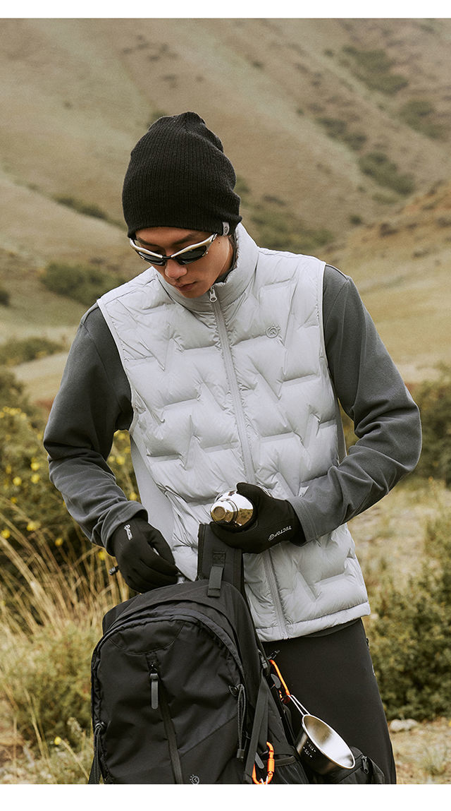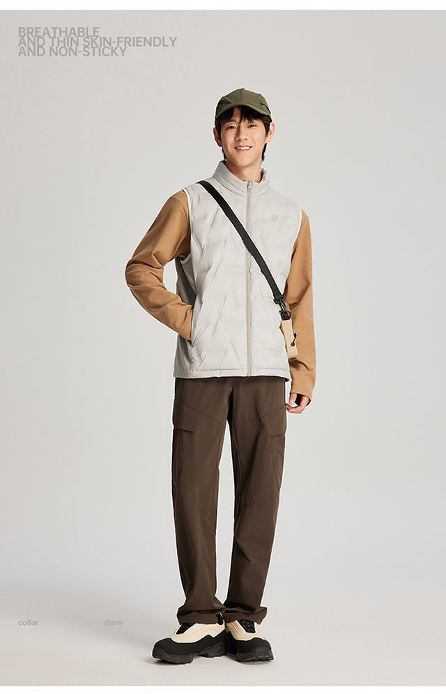 24 가을, 겨울 탐험 야외 다운 조끼 남성용 경량 스탠드 업 칼라 다운 조끼 화이트 오리 다운 남성용 스포츠 조끼
