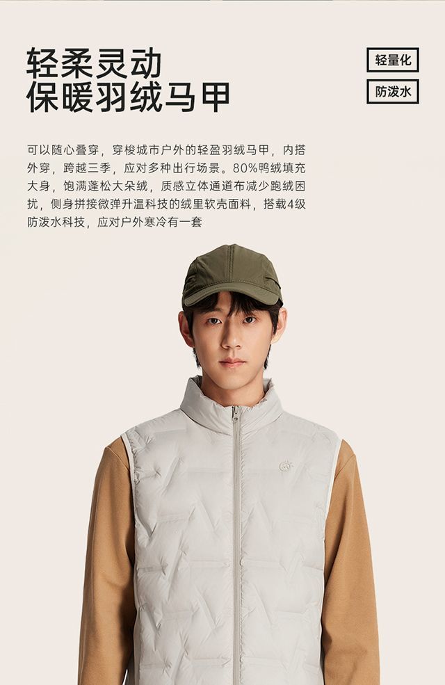 24 가을, 겨울 탐험 야외 다운 조끼 남성용 경량 스탠드 업 칼라 다운 조끼 화이트 오리 다운 남성용 스포츠 조끼스토어 가기