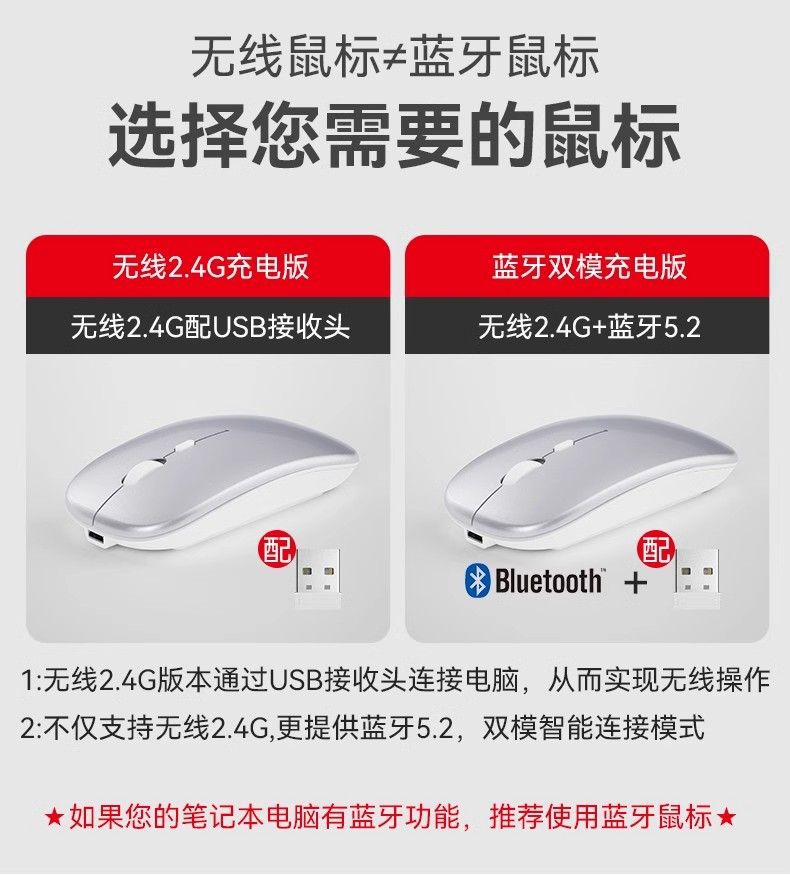 • Bluetooth 5.2+2.4G 듀얼 모드 버전-무음 충전 버전-Space Silver
