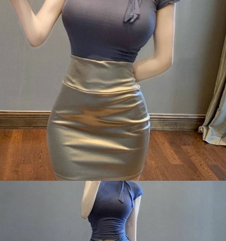 하이웨이스트 슬림핏 여성용 다용도 핫걸 스커트, 광택이 있고 실키한 짧은 힙 스커트, 타이트한 스커트스토어 가기