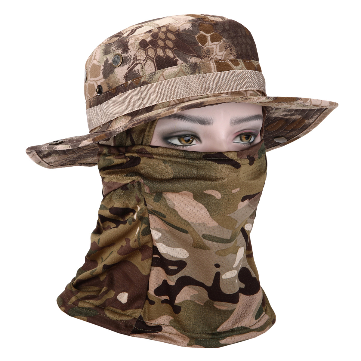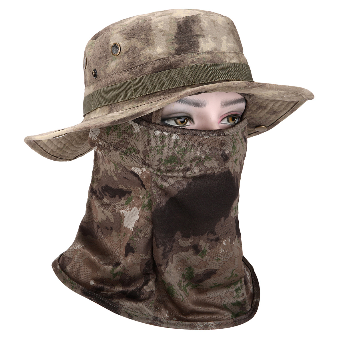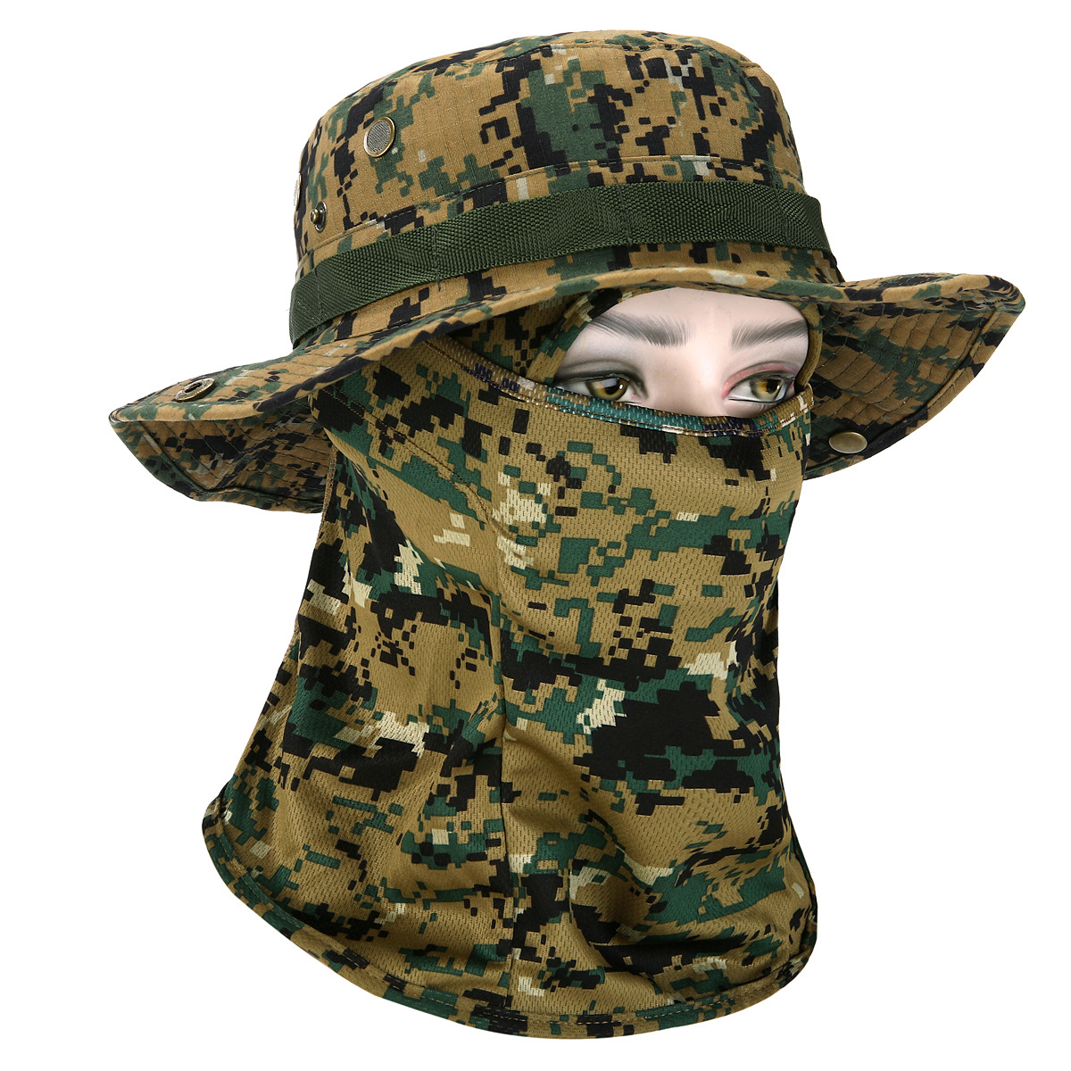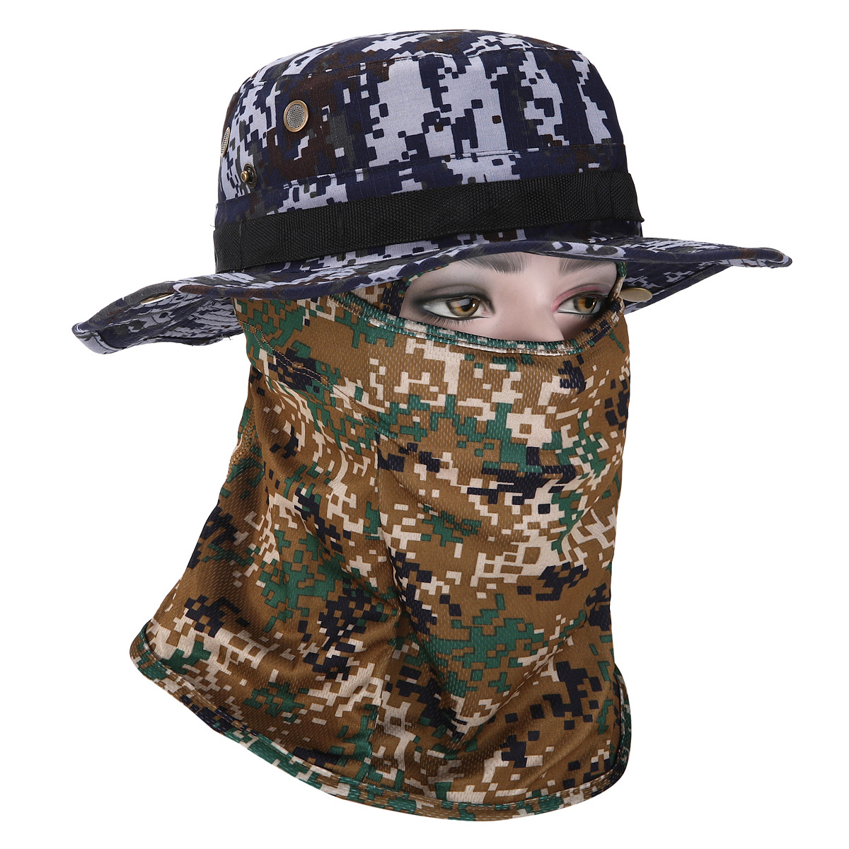 카모 라운드 챙 모자 야외 와이드 챙 부니 모자 군사 팬 카모 모자 낚시 하이킹 모자 태양 보호 통기성 어부 모자 남자