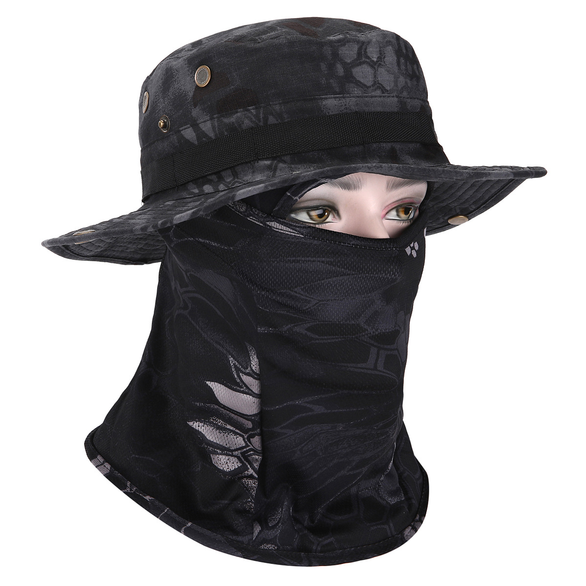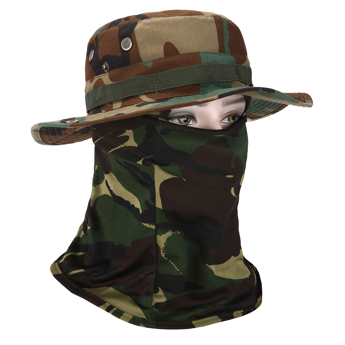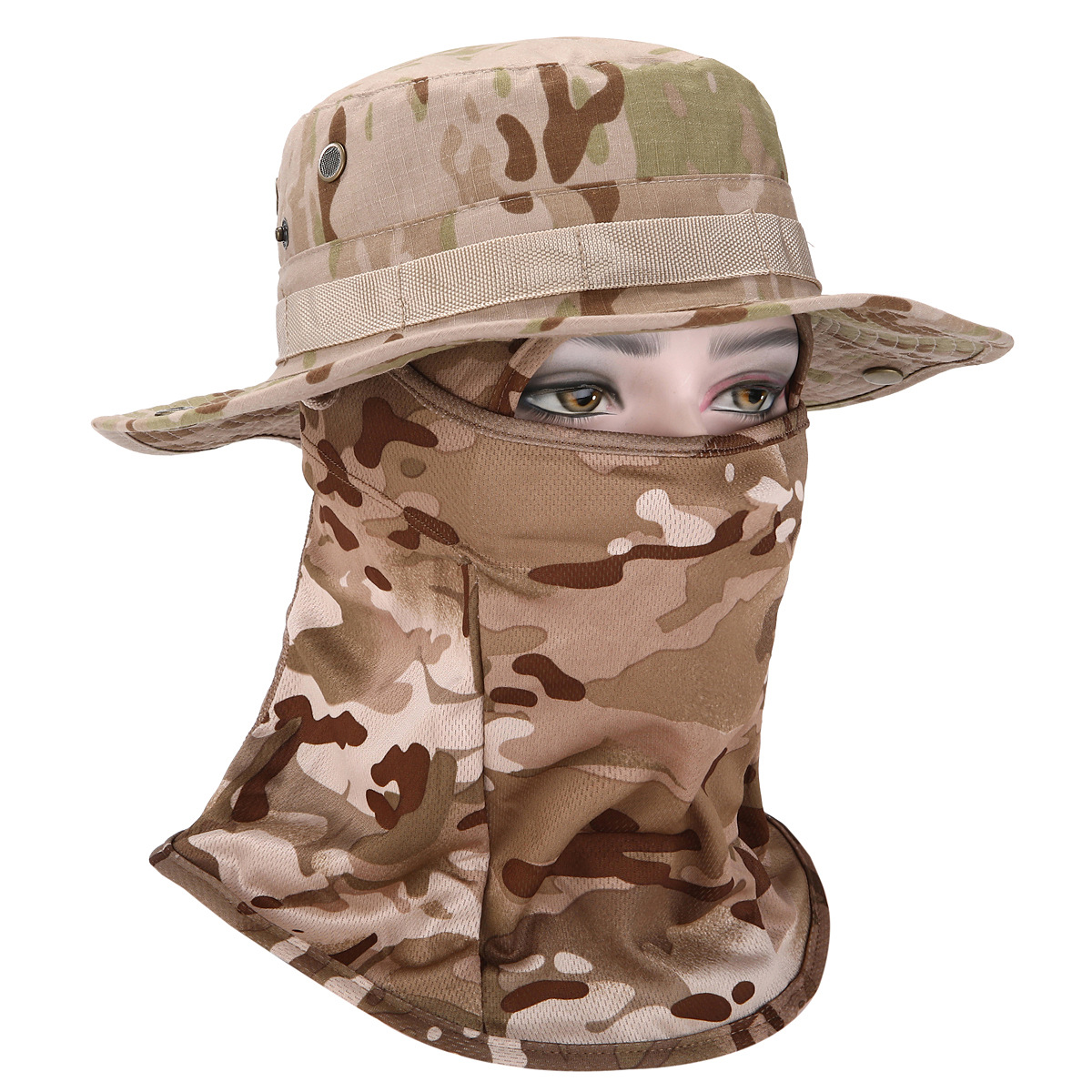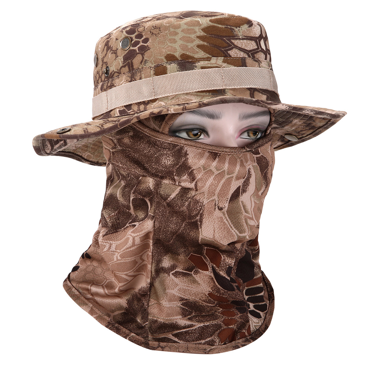 카모 라운드 챙 모자 야외 와이드 챙 부니 모자 군사 팬 카모 모자 낚시 하이킹 모자 태양 보호 통기성 어부 모자 남자