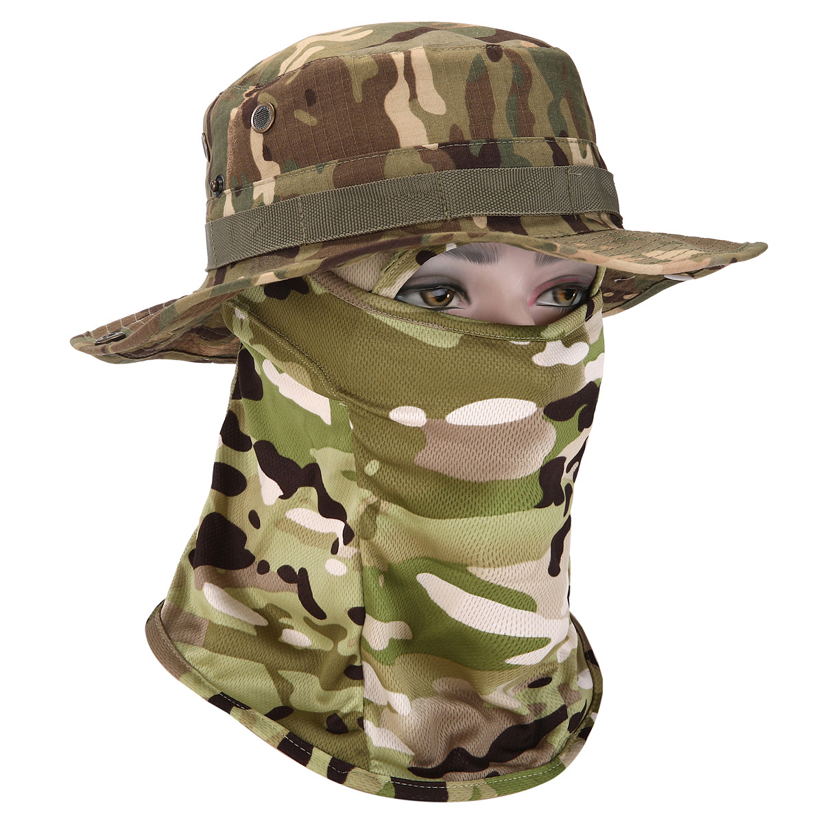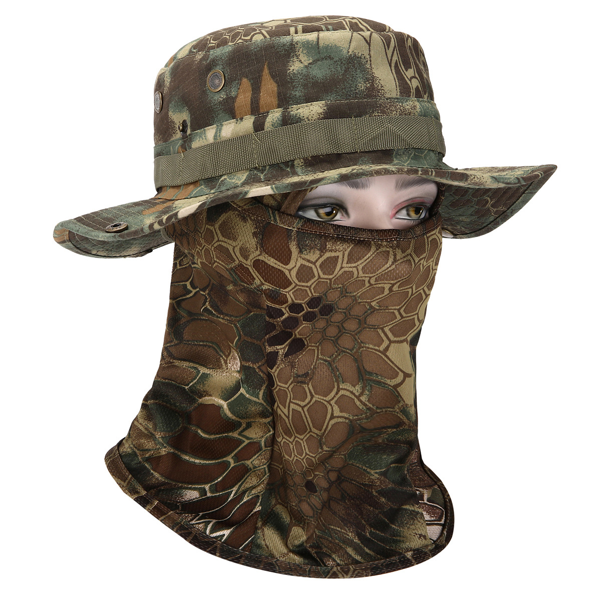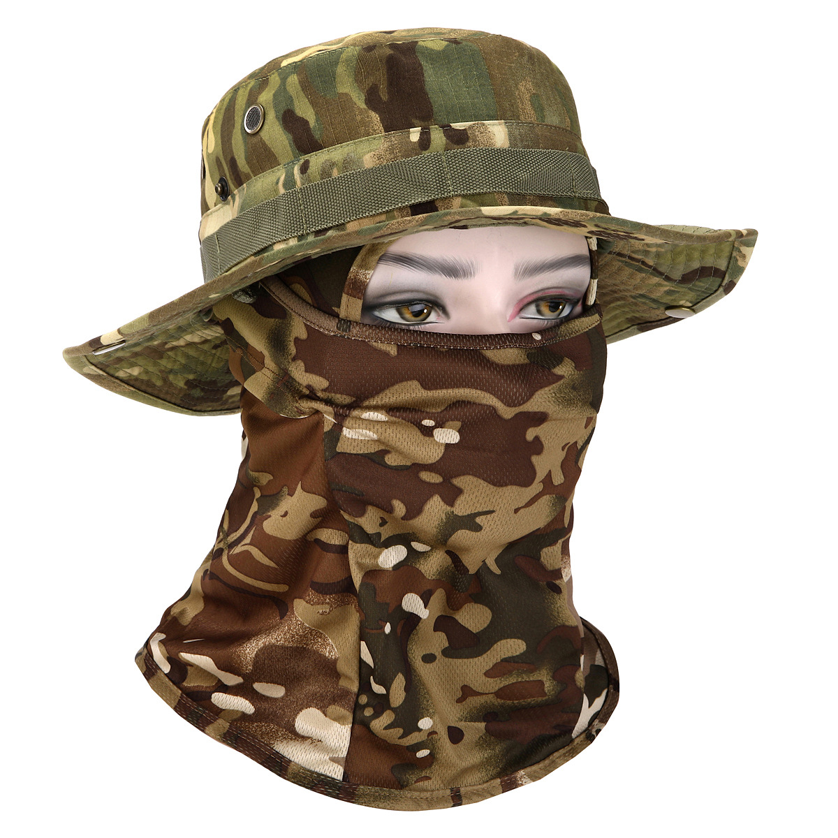 카모 라운드 챙 모자 야외 와이드 챙 부니 모자 군사 팬 카모 모자 낚시 하이킹 모자 태양 보호 통기성 어부 모자 남자스토어 가기