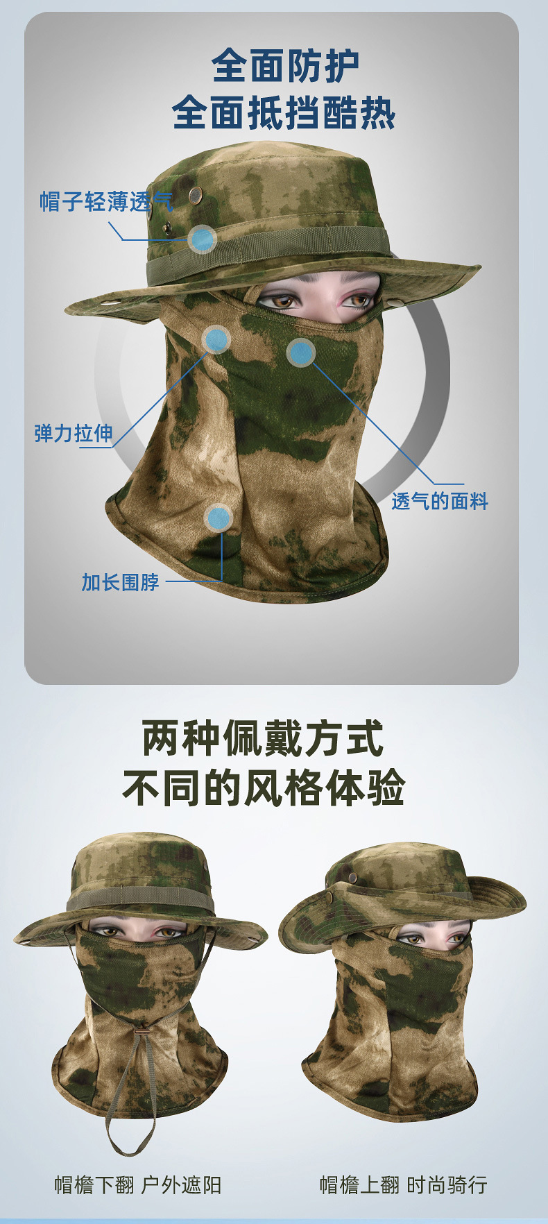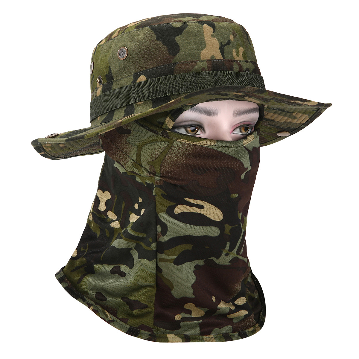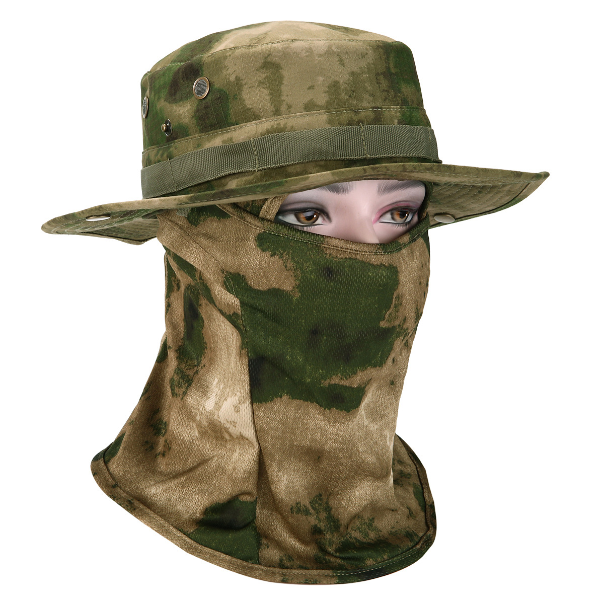 카모 라운드 챙 모자 야외 와이드 챙 부니 모자 군사 팬 카모 모자 낚시 하이킹 모자 태양 보호 통기성 어부 모자 남자스토어 가기