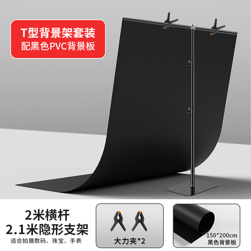 • 200*200 보이지 않는 배경 스탠드 + 150*200 검정색 PVC 배경 보드