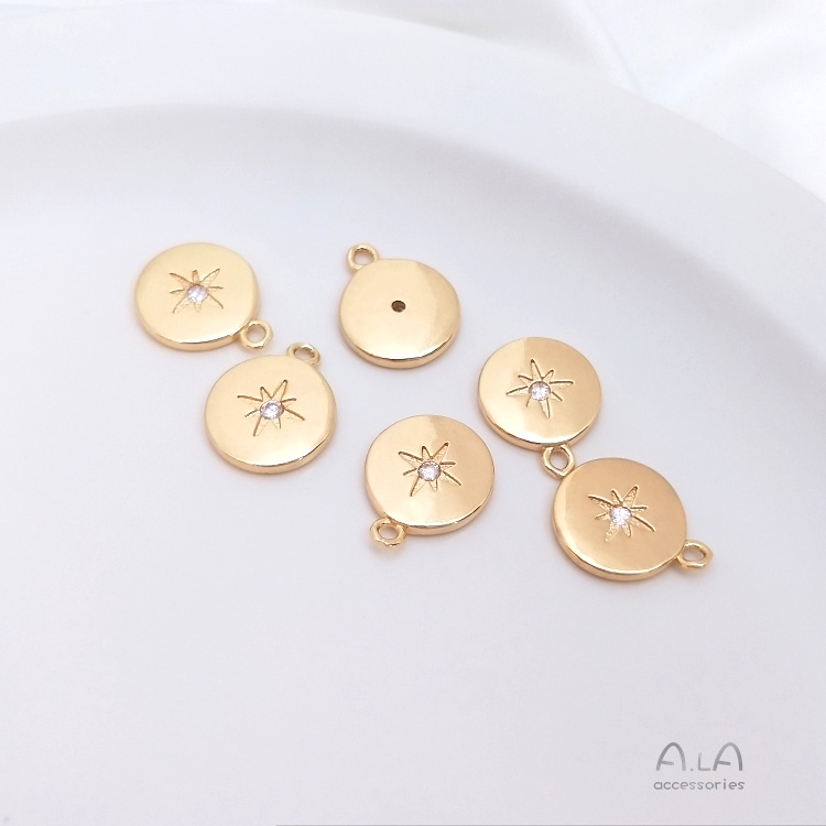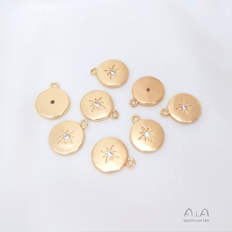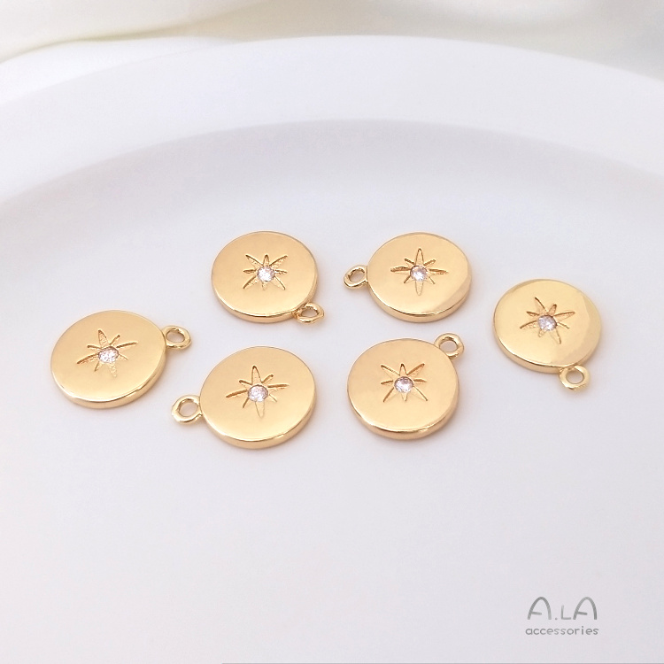 14K 금도금, 진짜 금도금, 전기 도금, 지르콘 팔각별 원형 펜던트, 수제 DIY 쥬얼리 액세서리, 원형 펜던트스토어 가기