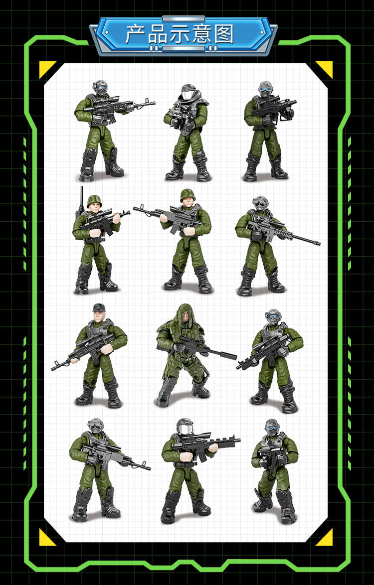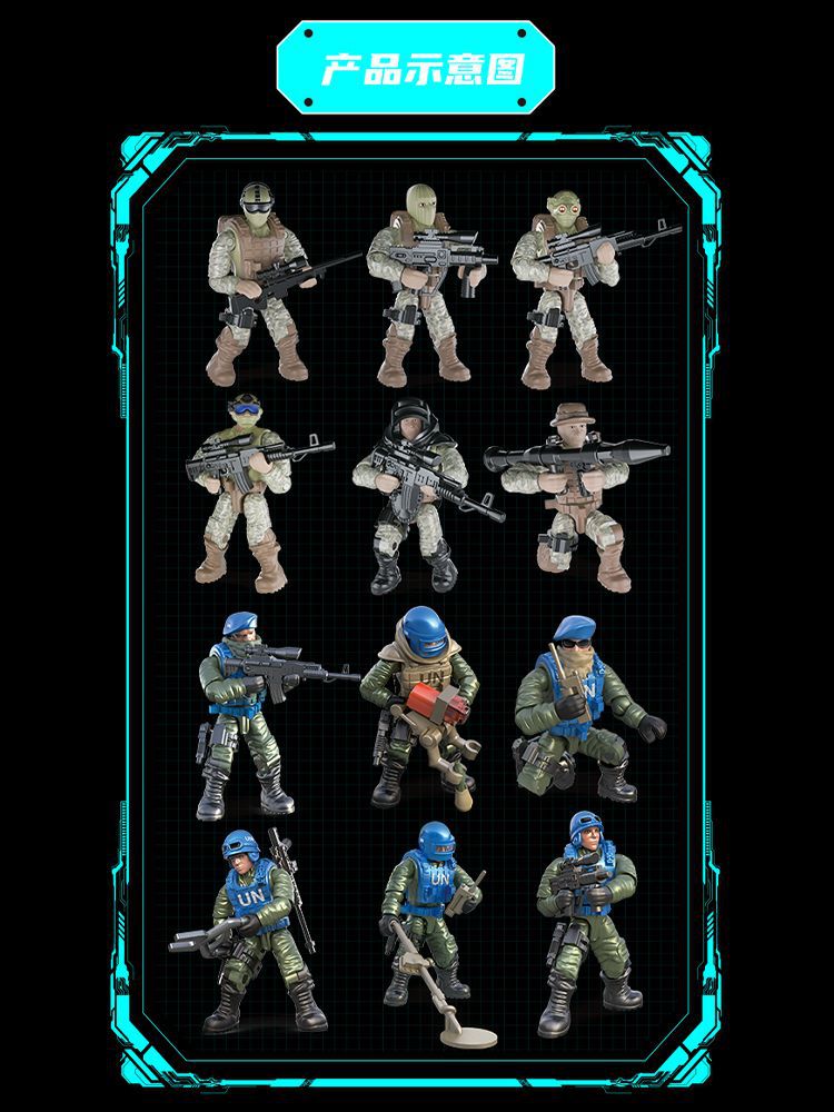Xiangjun 빌딩 블록 1050 군사 미니 피규어 블라인드 백 학생 어린이 조립 호환 작은 입자 뮤직 장난감 선물 상품스토어 가기