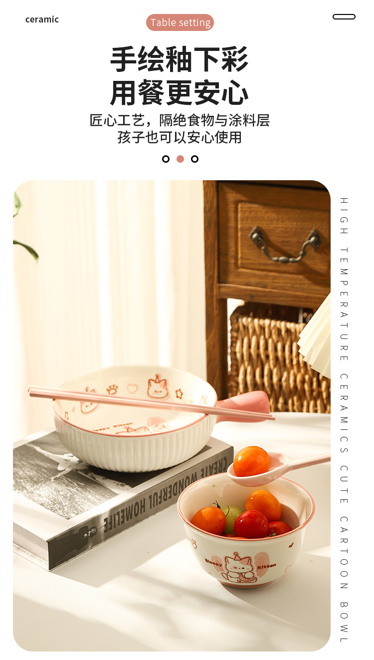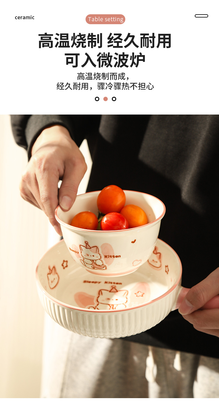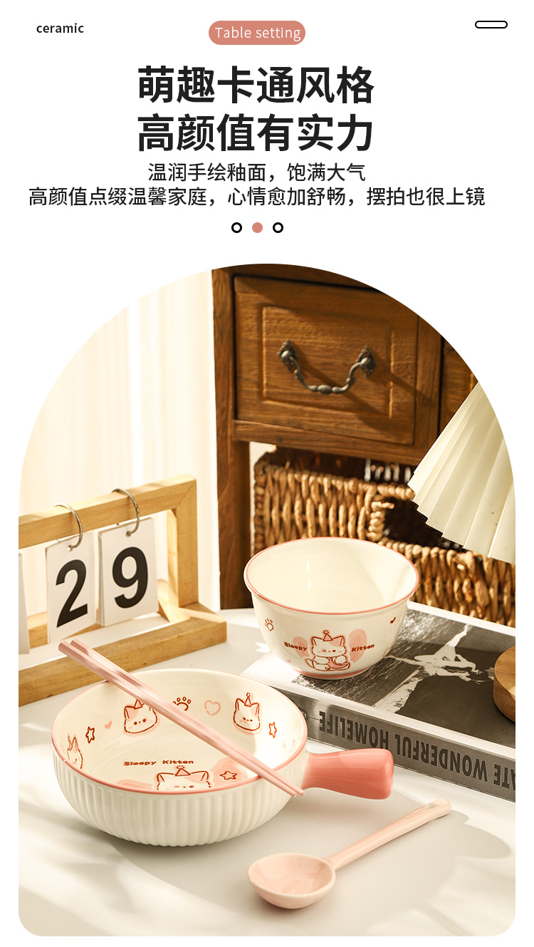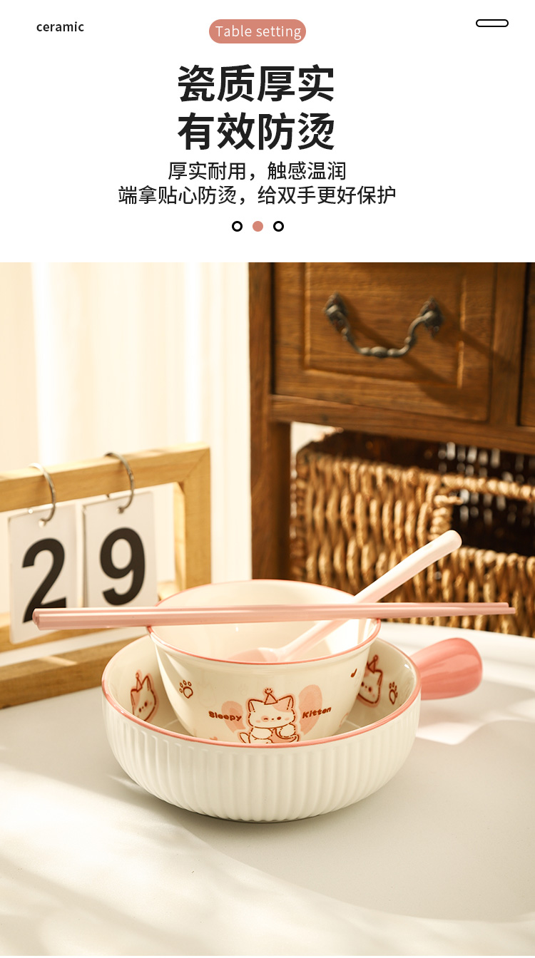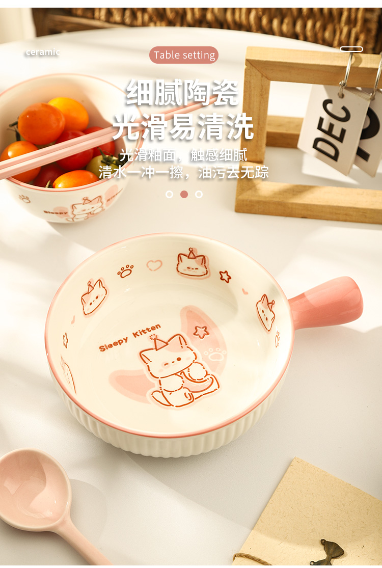 • ✷♀♀◎◎✷졸린 아기고양이 [3종 세트] 손잡이 국수 그릇 + 국그릇 + 국수 스푼✷♀♀◎◎✷