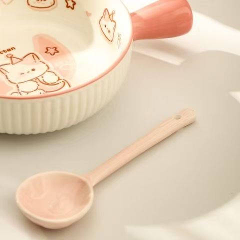 • ✷ ♀ ♀ ◎ ◎ ✷ 졸린 아기고양이 [2종 세트] 손잡이 국수그릇 + 파우더스푼 ✷ ♀ ♀ ◎ ◎ ✷