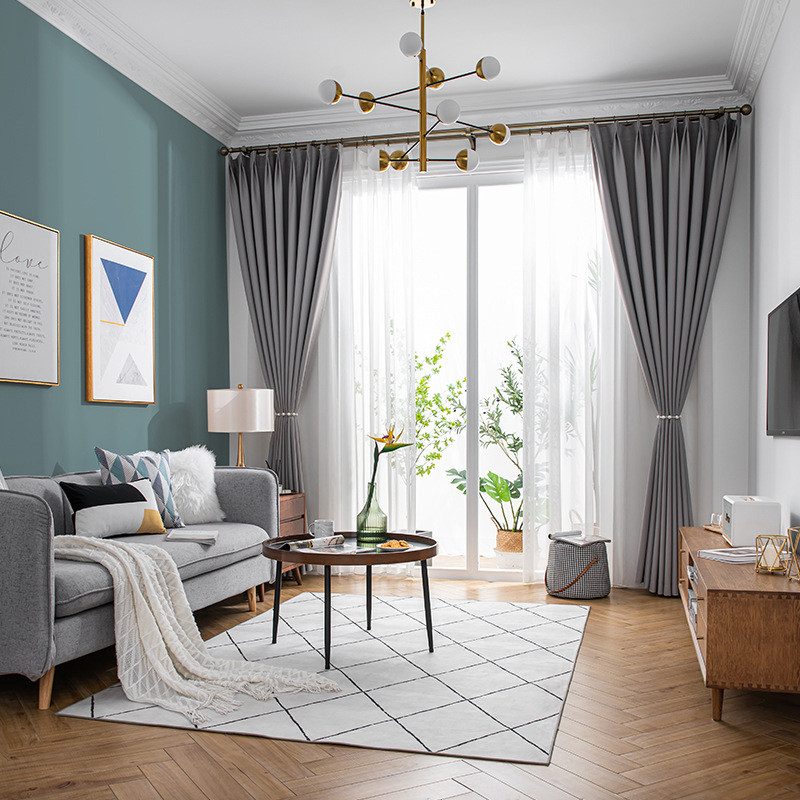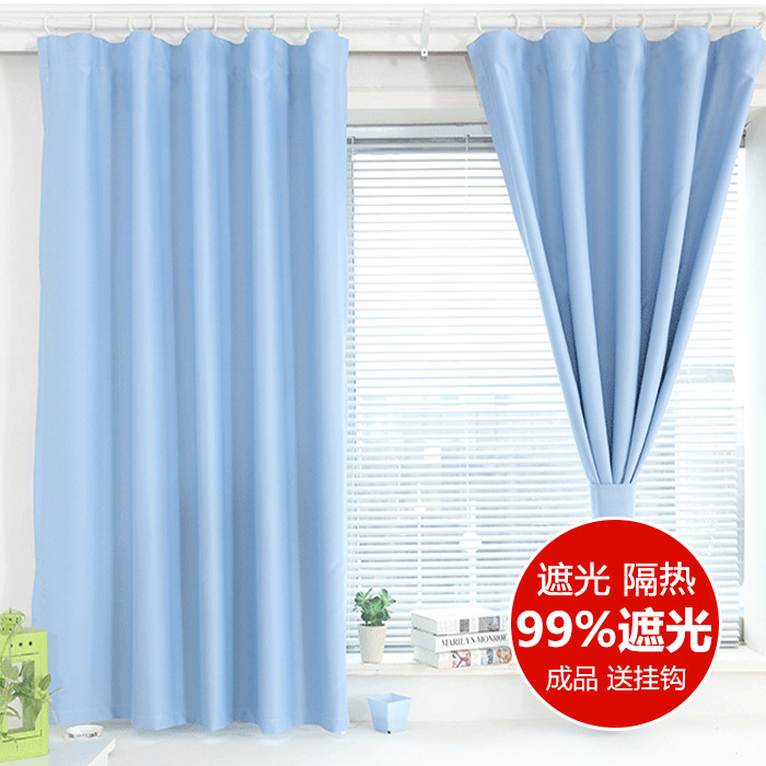 완전 암막 커튼, 두꺼운 차양 및 단열 후크 커튼, 침실, 거실, 발코니, 플로팅 블루 커튼 천, 자외선 차단스토어 가기
