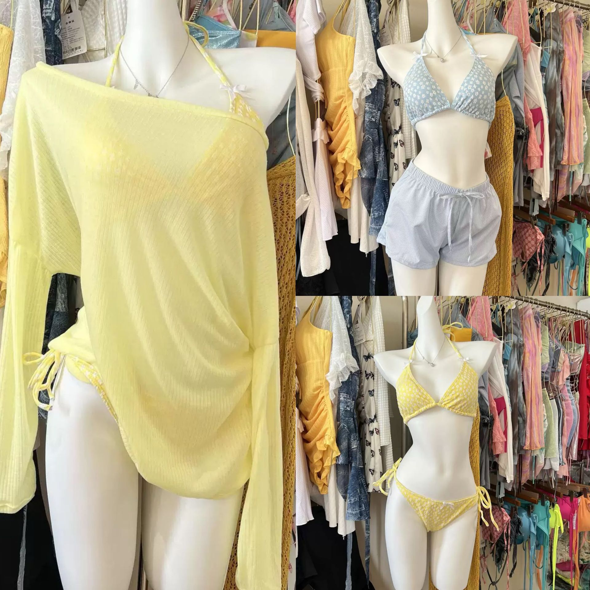 고급 비키니 보수적 루즈한 자외선 차단 블라우스 한국어 버전 ins 핫걸 휴가 수영복 여성용 4피스 수영복스토어 가기