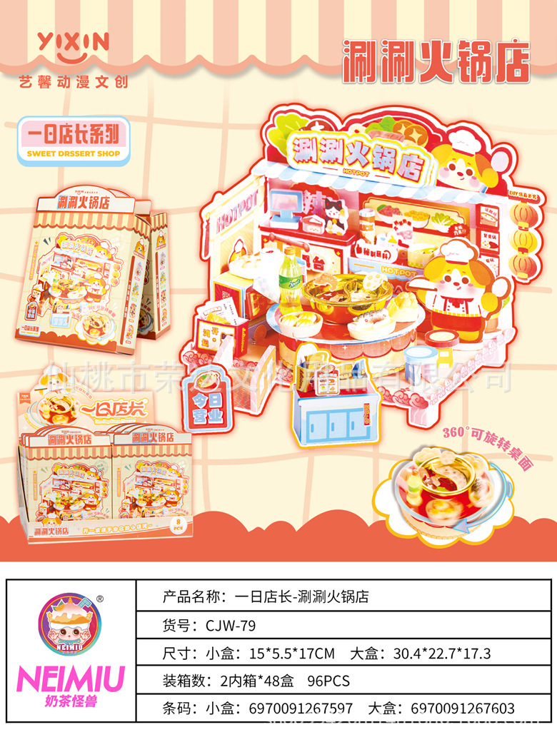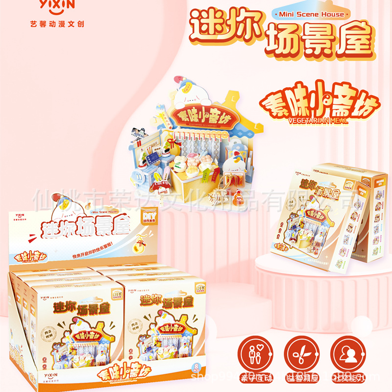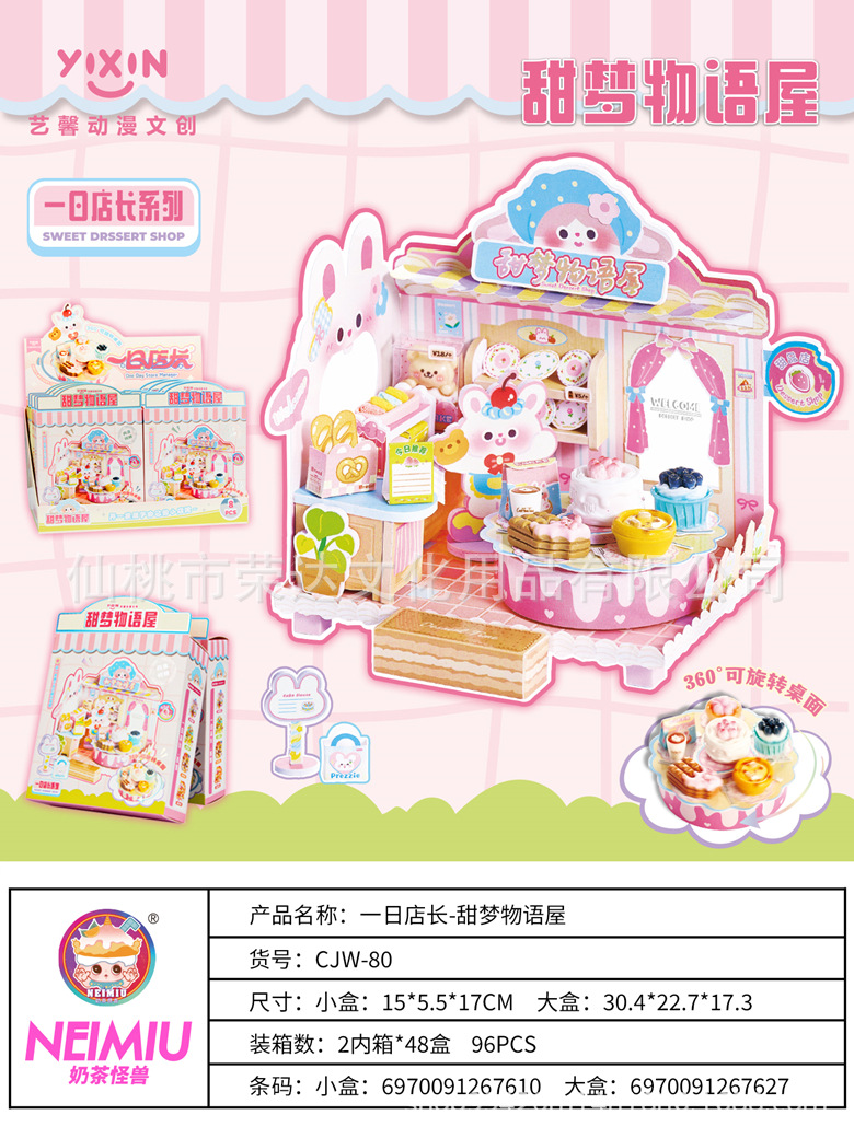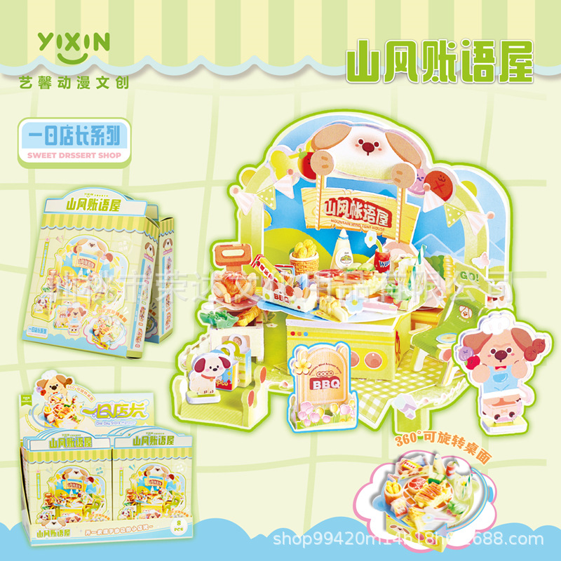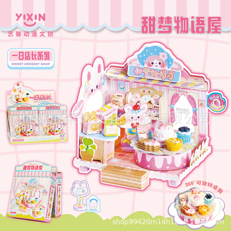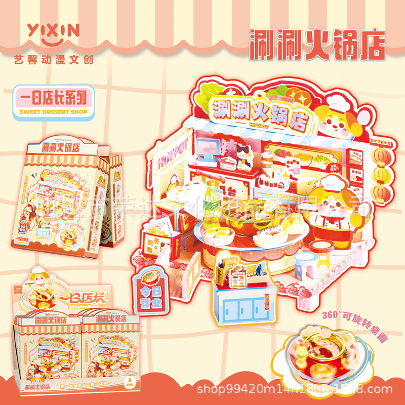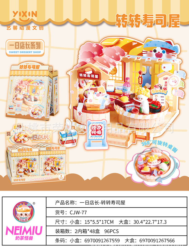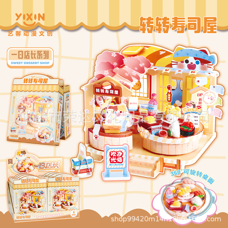Yixin Anime Cultural and Creative CJW-77 미니 장면 하우스 회전 스시 하우스 일일 매장 매니저 DIY 조립 음식 장난감스토어 가기