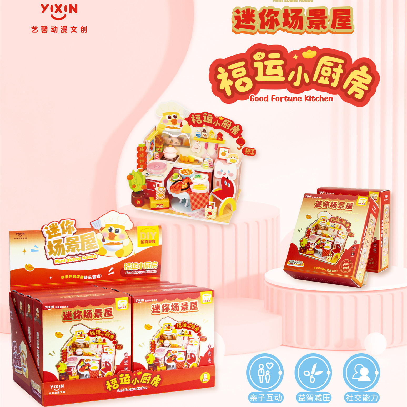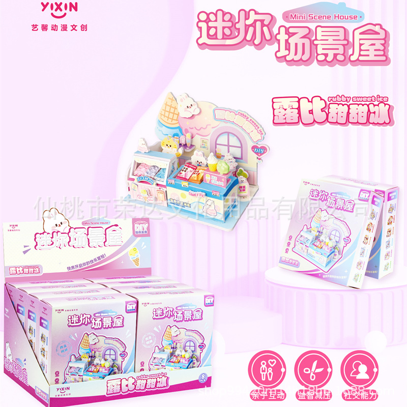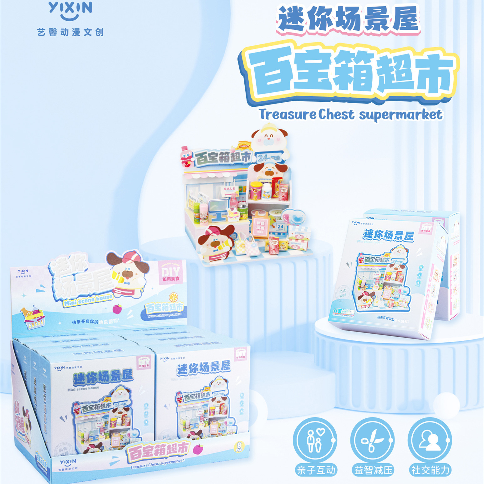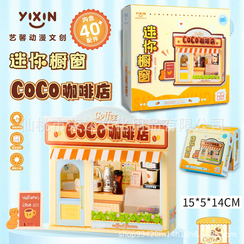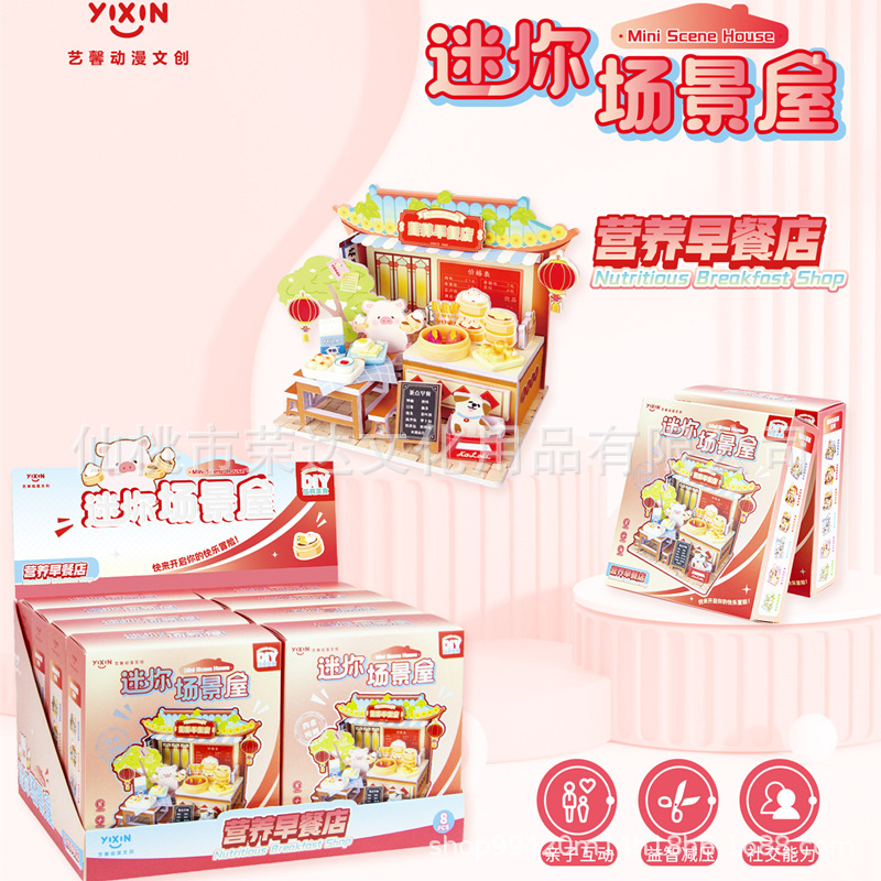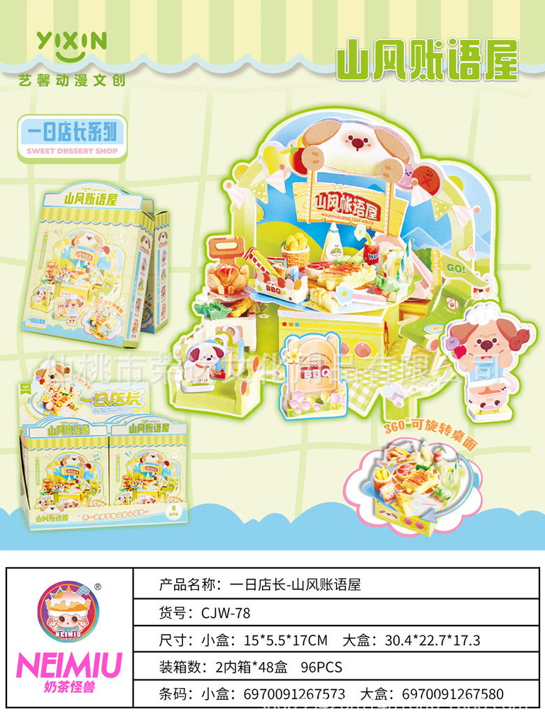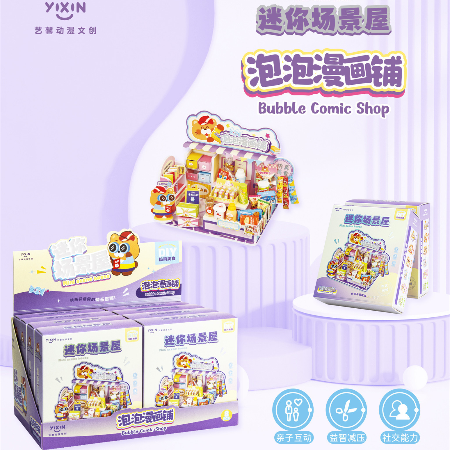Yixin Anime Cultural and Creative CJW-77 미니 장면 하우스 회전 스시 하우스 일일 매장 매니저 DIY 조립 음식 장난감스토어 가기