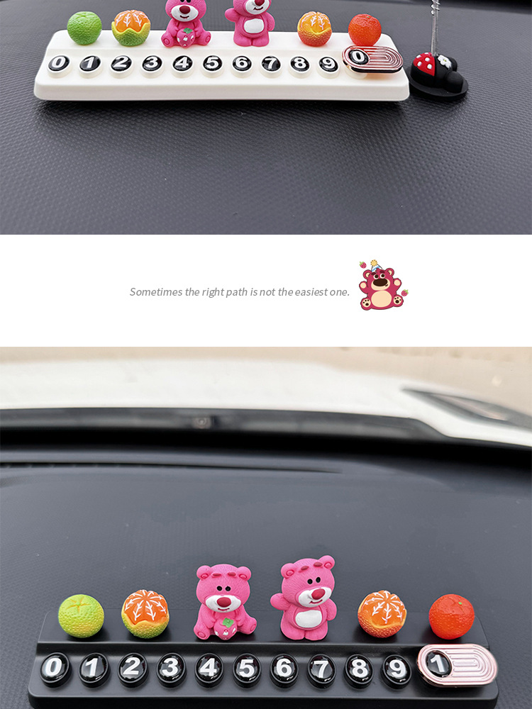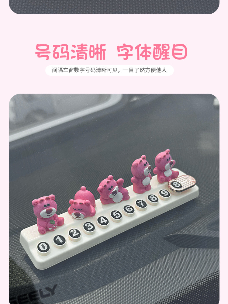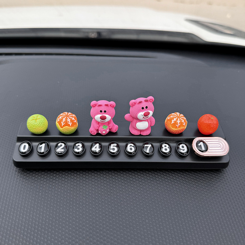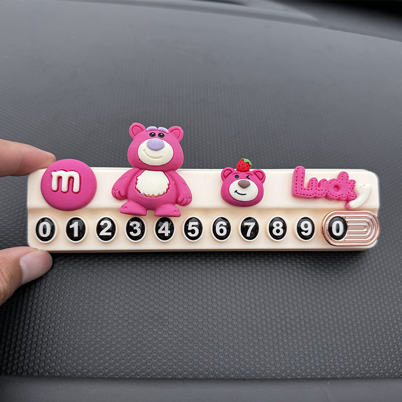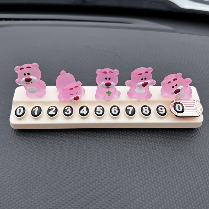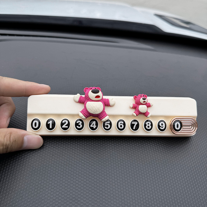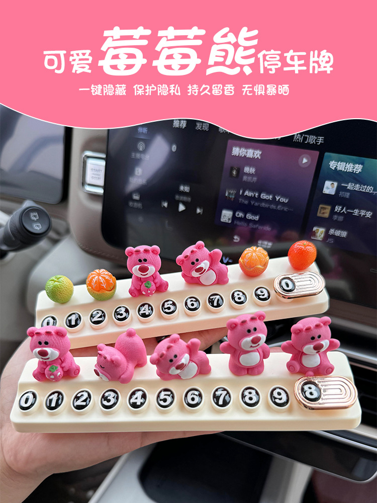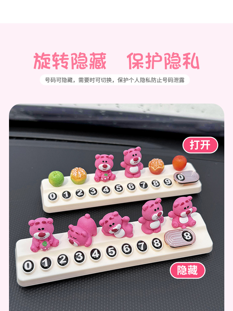 귀여운 딸기 곰 임시 주차 번호판, 차량 이동 전화 번호판, 창의적인 맞춤형 자동차 인테리어 장식스토어 가기
