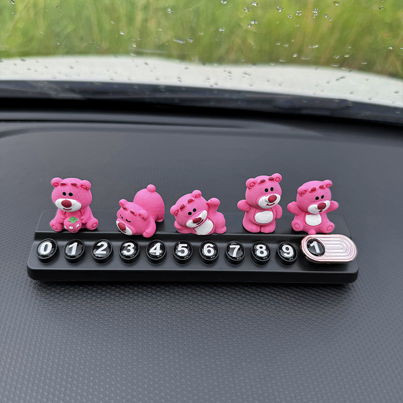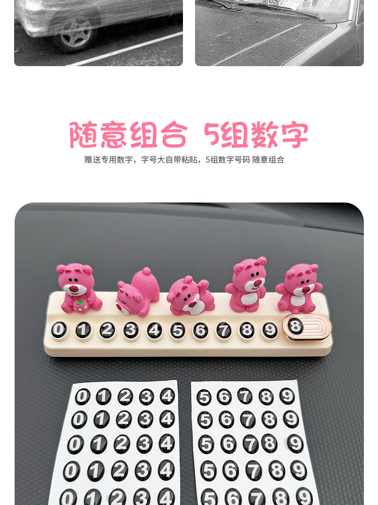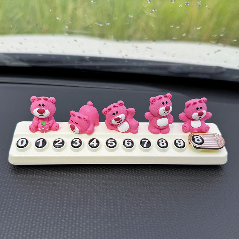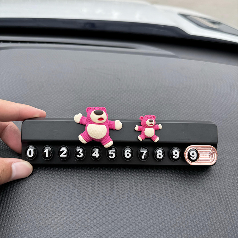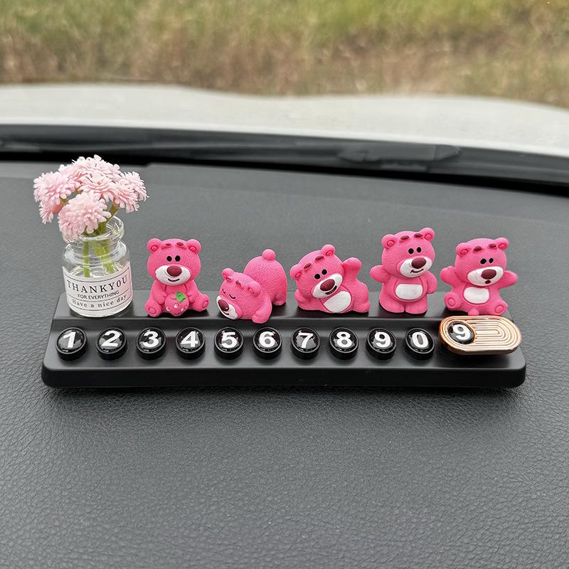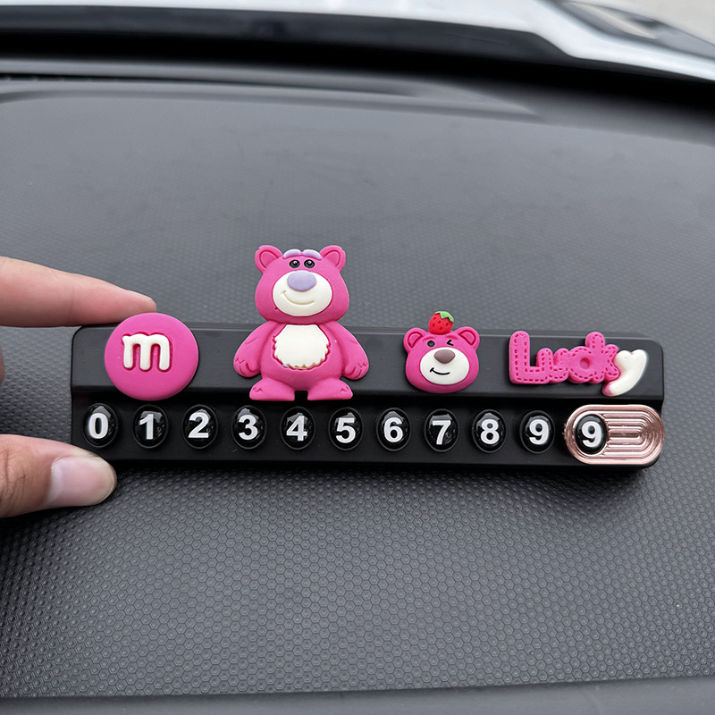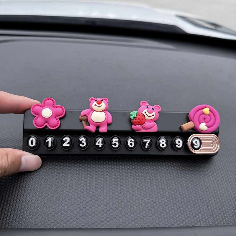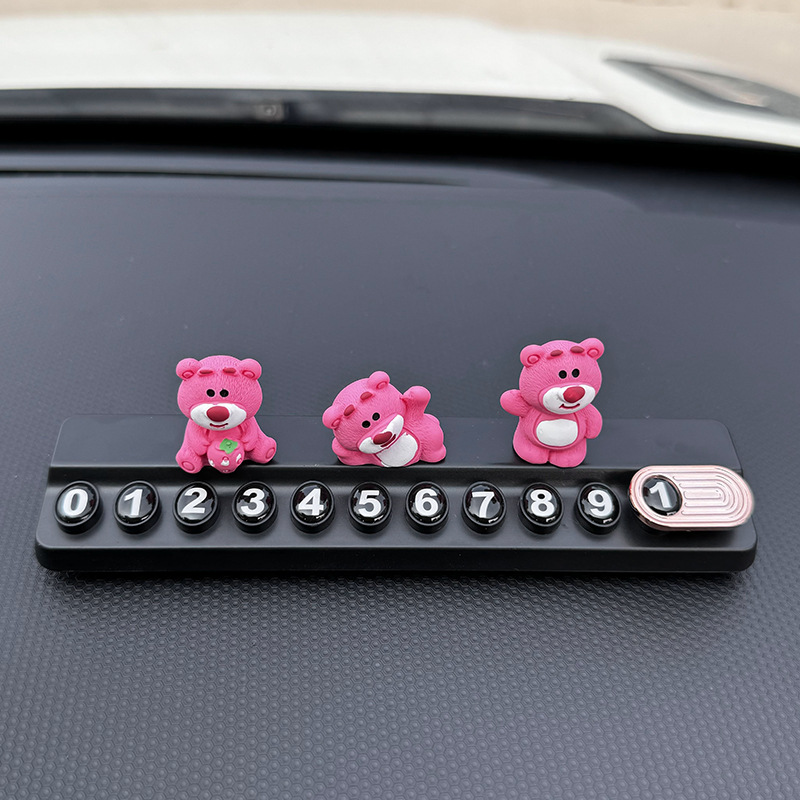 귀여운 딸기 곰 임시 주차 번호판, 차량 이동 전화 번호판, 창의적인 맞춤형 자동차 인테리어 장식스토어 가기