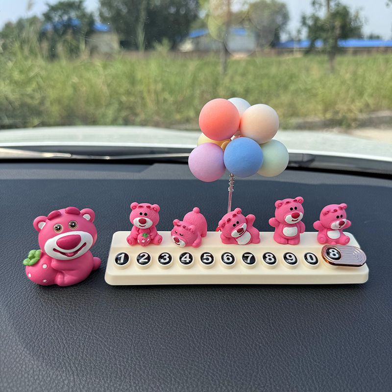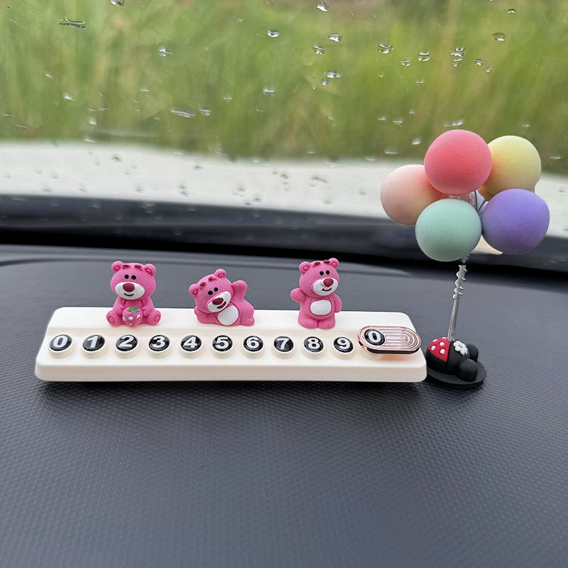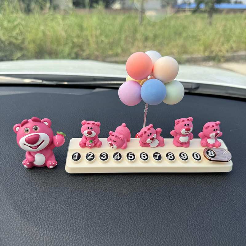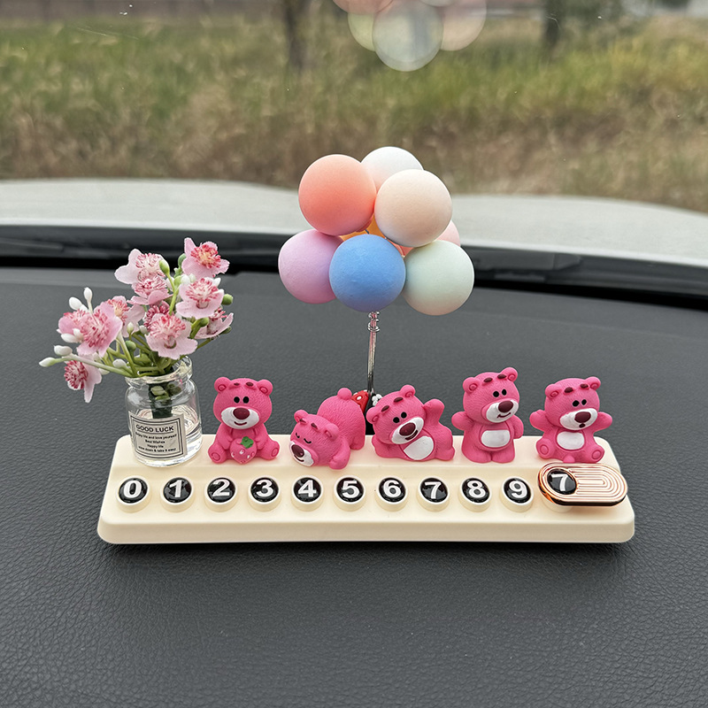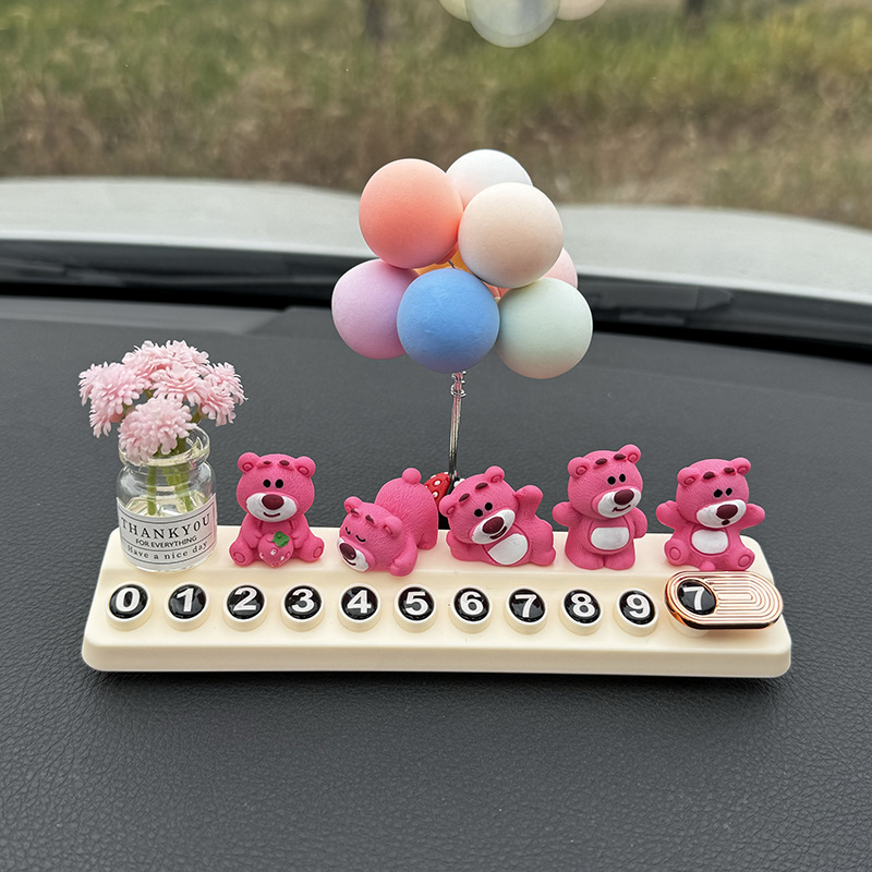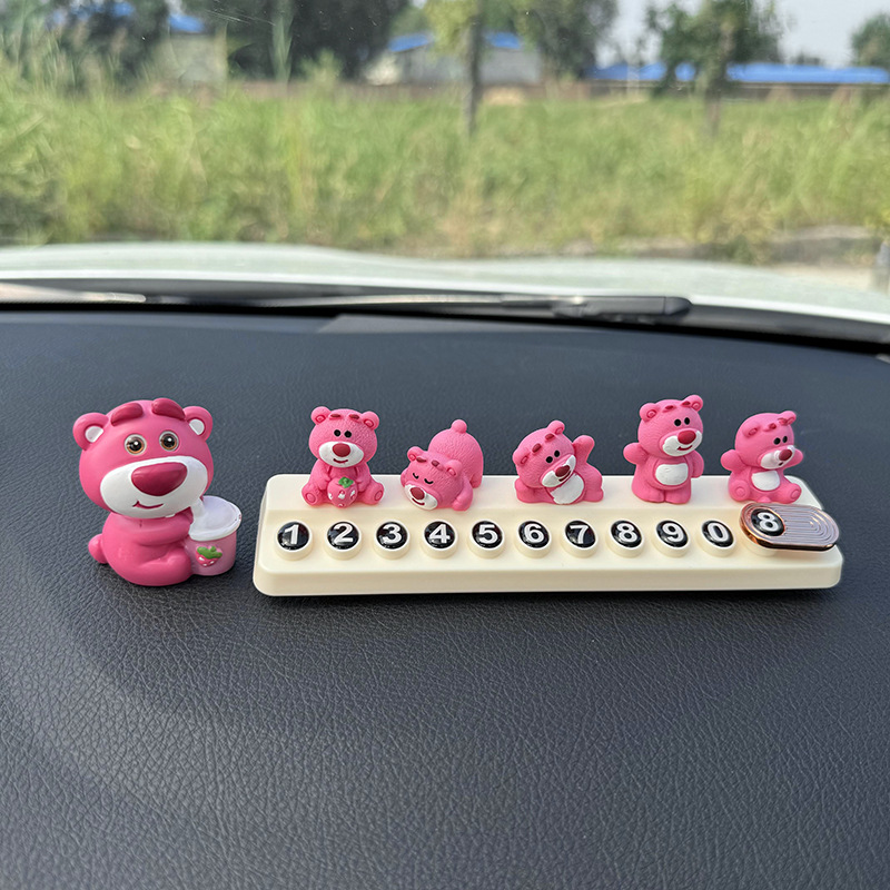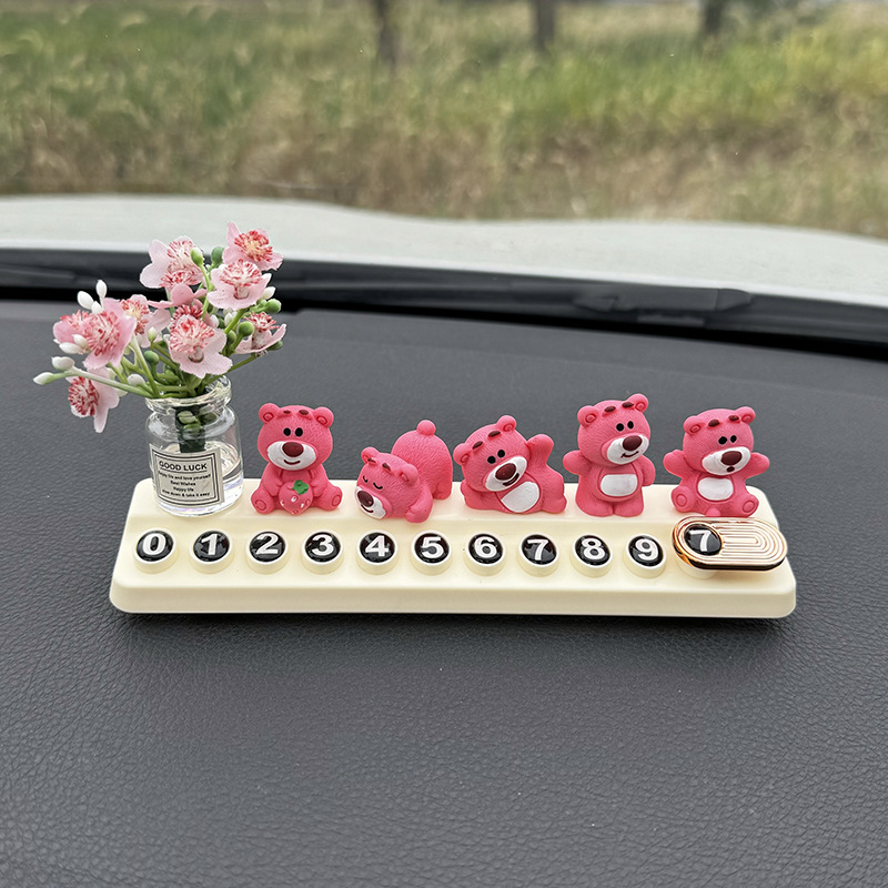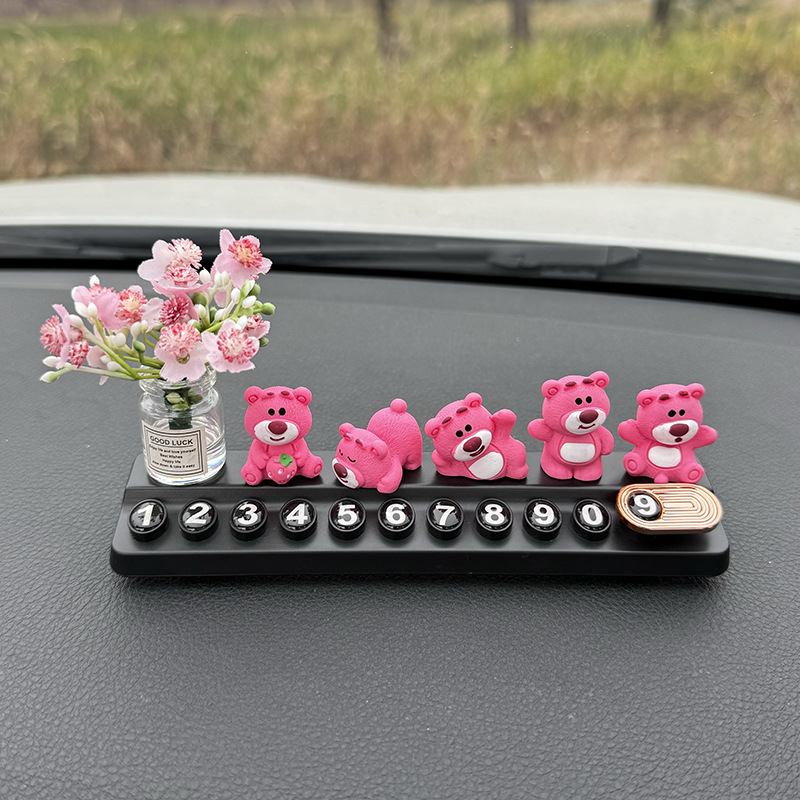 귀여운 딸기 곰 임시 주차 번호판, 차량 이동 전화 번호판, 창의적인 맞춤형 자동차 인테리어 장식스토어 가기