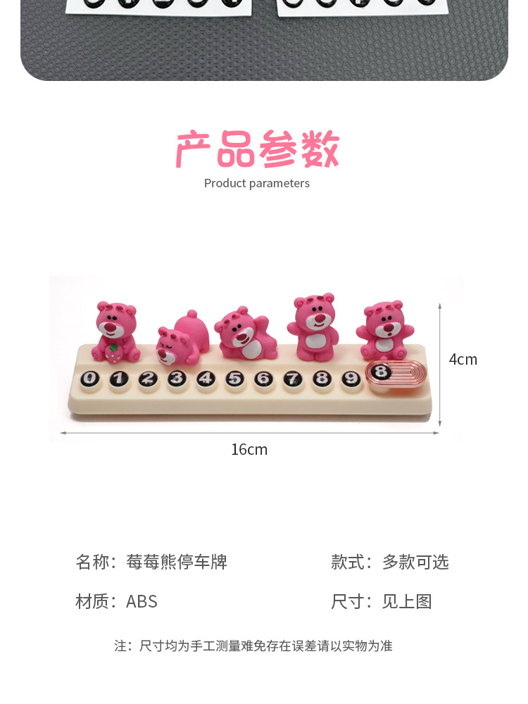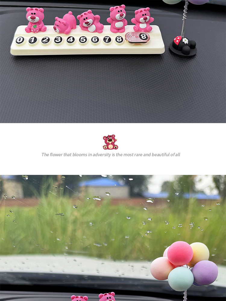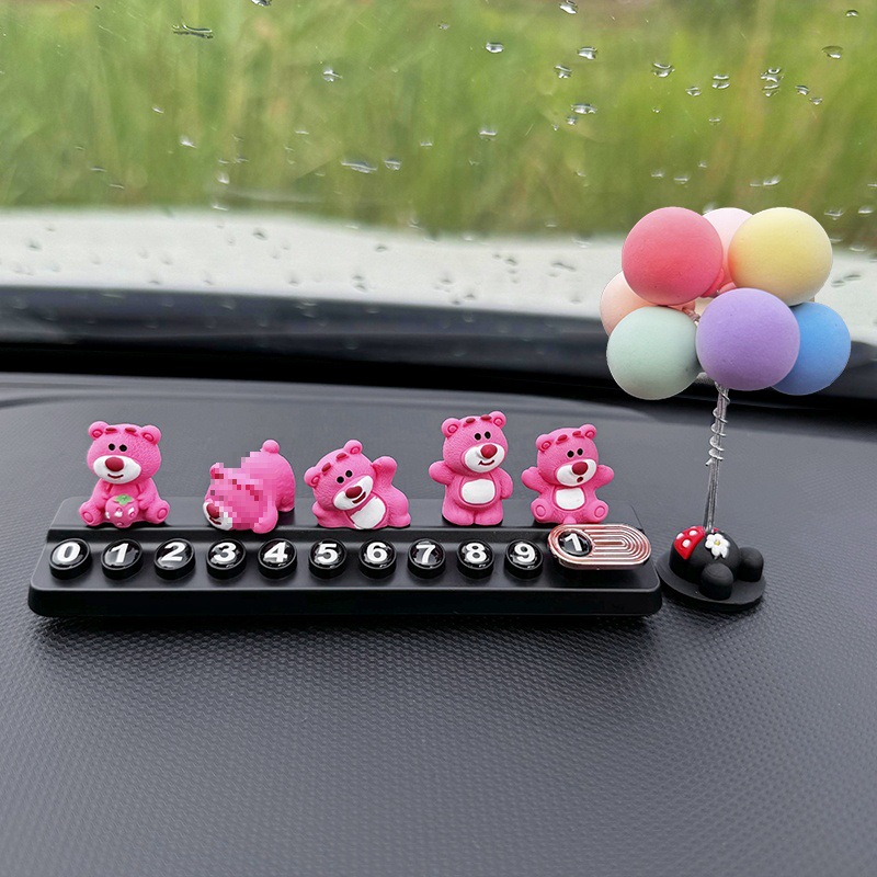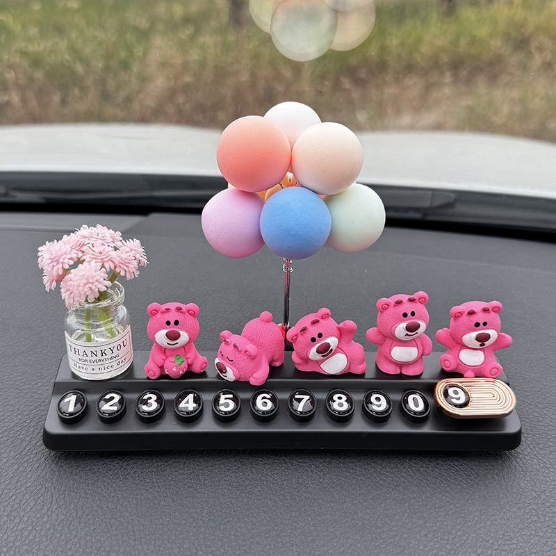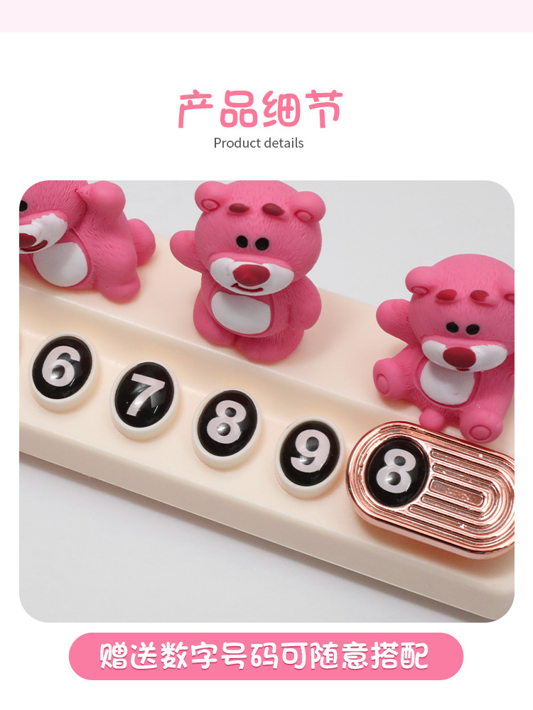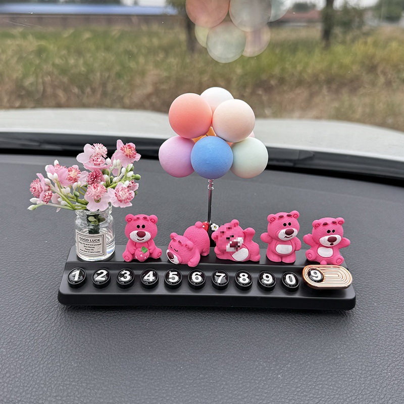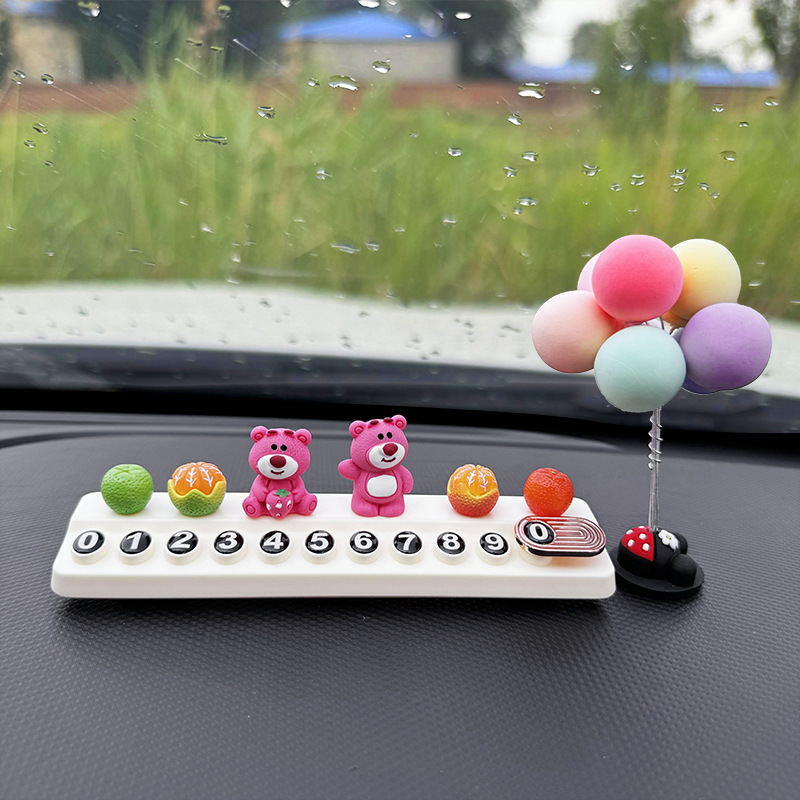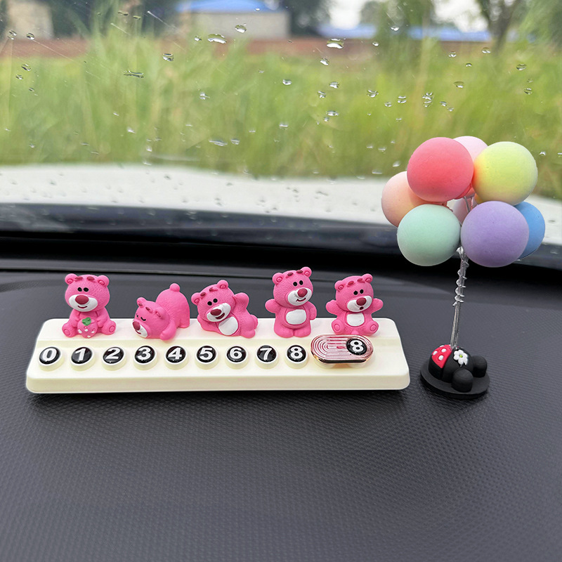귀여운 딸기 곰 임시 주차 번호판, 차량 이동 전화 번호판, 창의적인 맞춤형 자동차 인테리어 장식스토어 가기