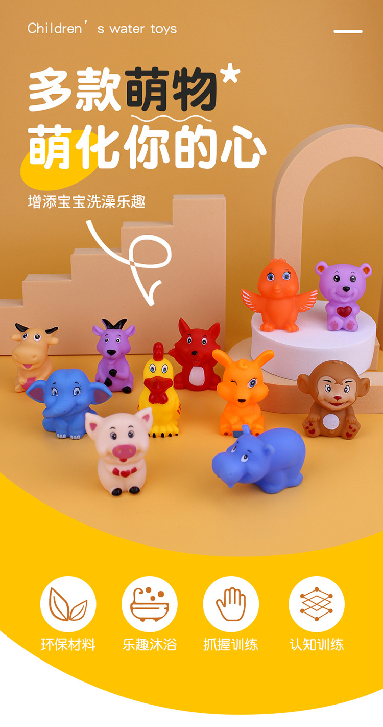 어린이 물놀이 장난감, 아기 수영 및 목욕, 비닐 부드러운 고무 숲 및 육지 조합 장난감, 작은 동물을 짜내고 소리 지르기