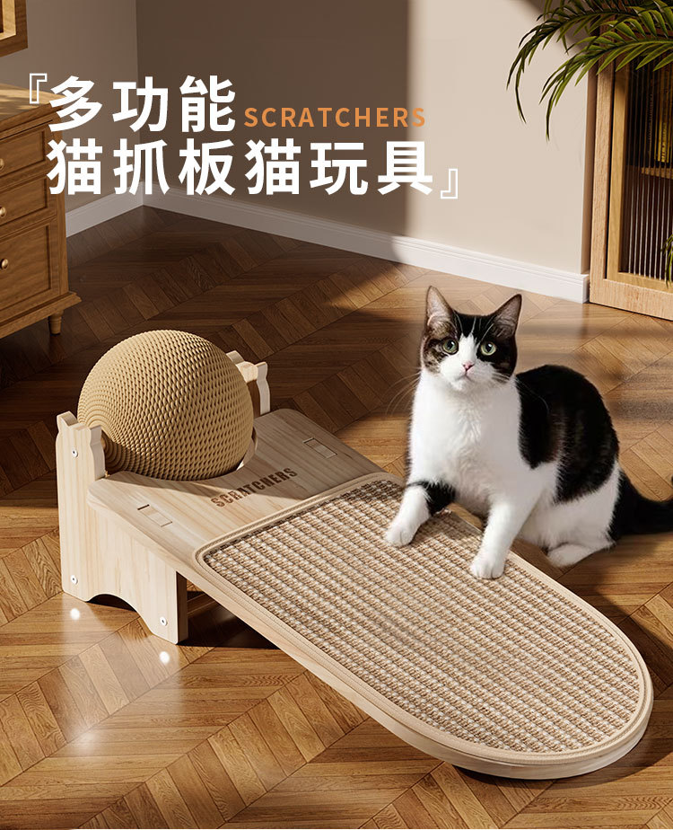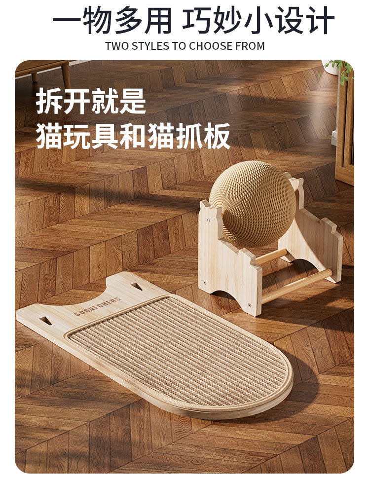 Miaoxiangle 단단한 나무 고양이 스크래치 보드 고양이 장난감 스크래치 공 이중 목적 분리형 고양이 발톱 장난감은 고양이가 스스로 즐길 수 있도록 부스러기가 떨어지지 않습니다.스토어 가기