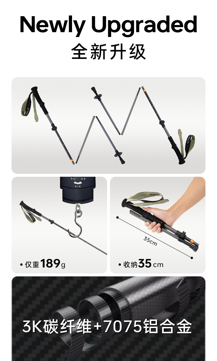 접이식 35cm 전문 등산용 탄소섬유 등산 스틱, 초경량 휴대용스토어 가기