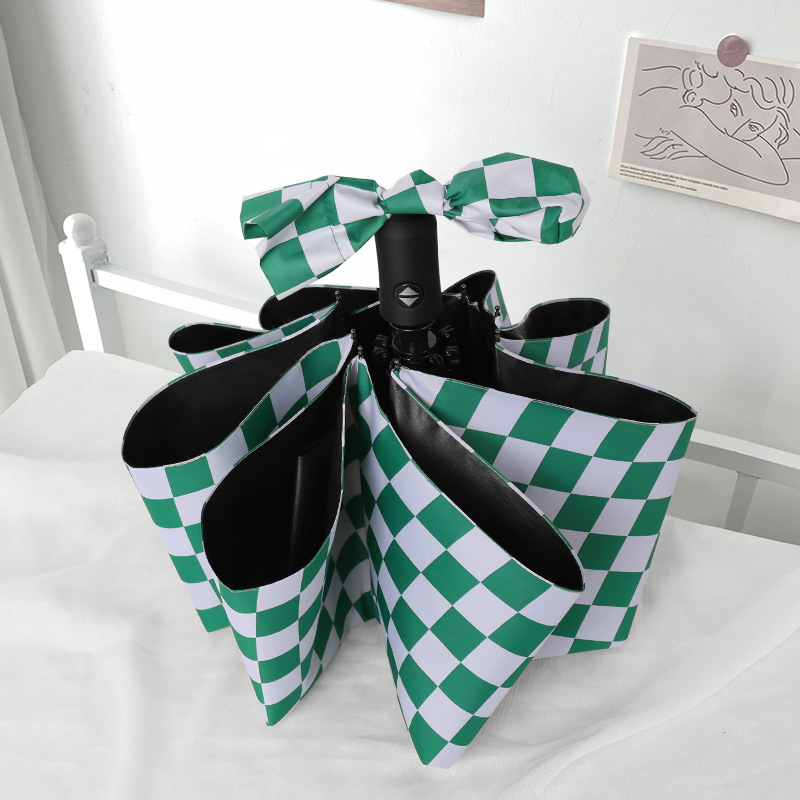 • 흰색 녹색☆체커보드 [자동 개폐식/비가 오나 눈이 오나 사용/자외선 차단 및 차양]