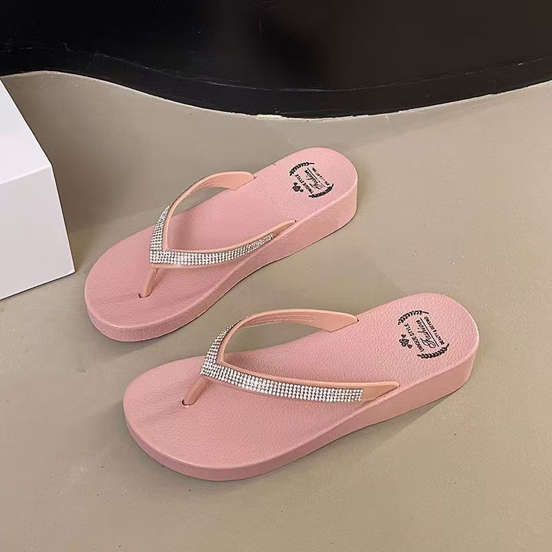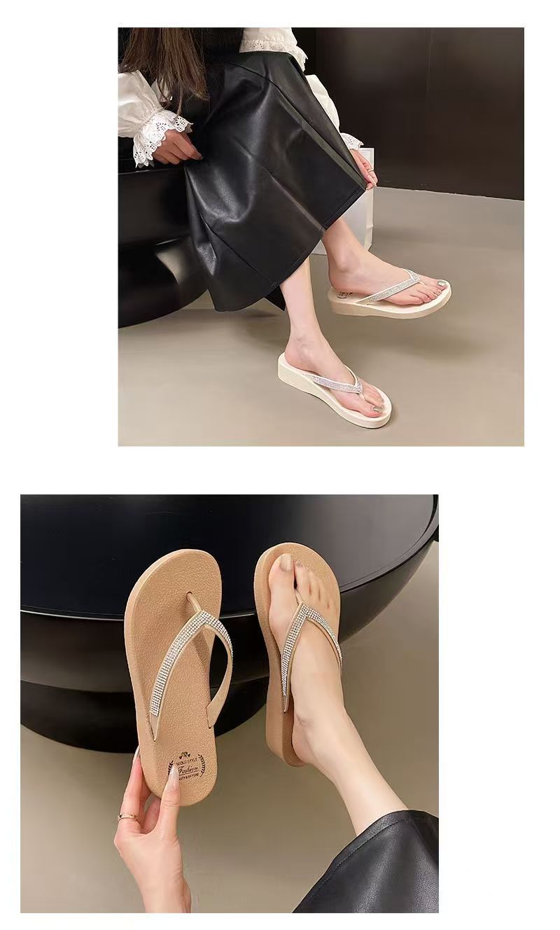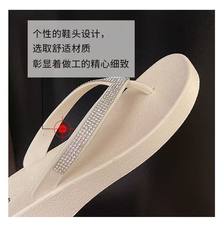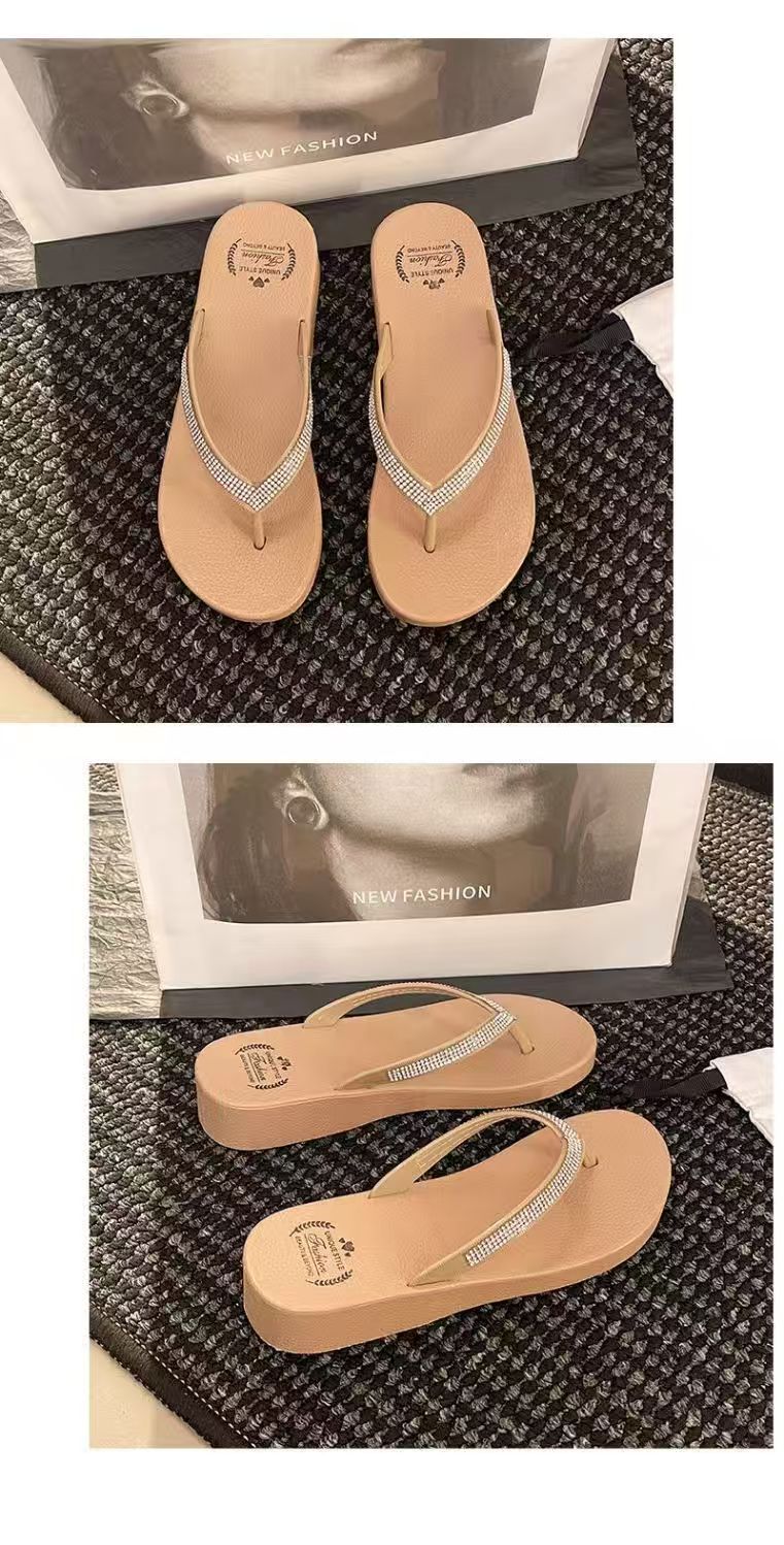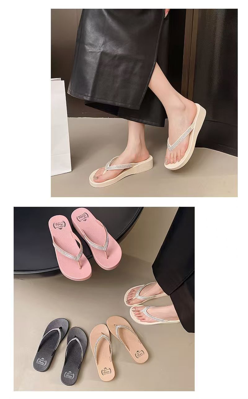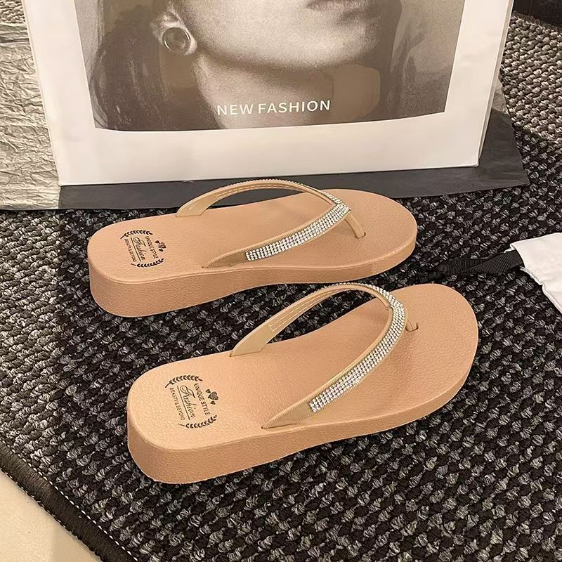 여성용 패셔너블한 라인스톤 슬리퍼, 여름용 두꺼운 밑창 웨지힐 슬리퍼, 스커트가 달린 프렌치 비치 슈즈스토어 가기