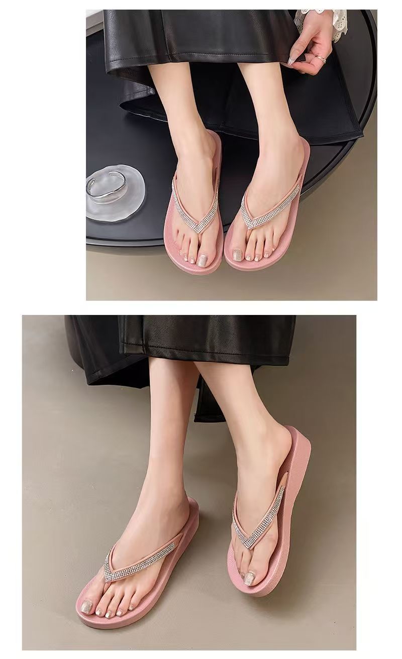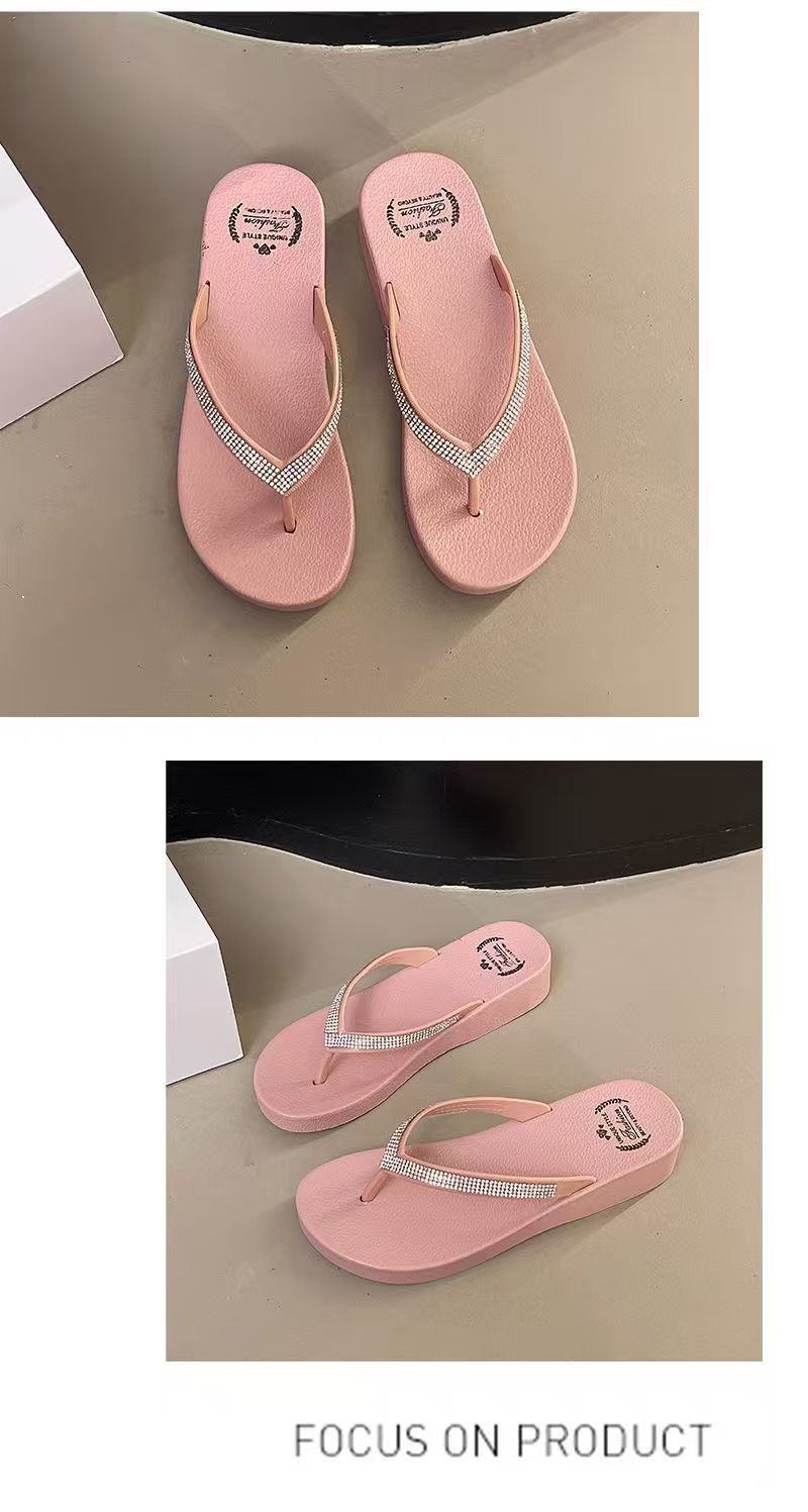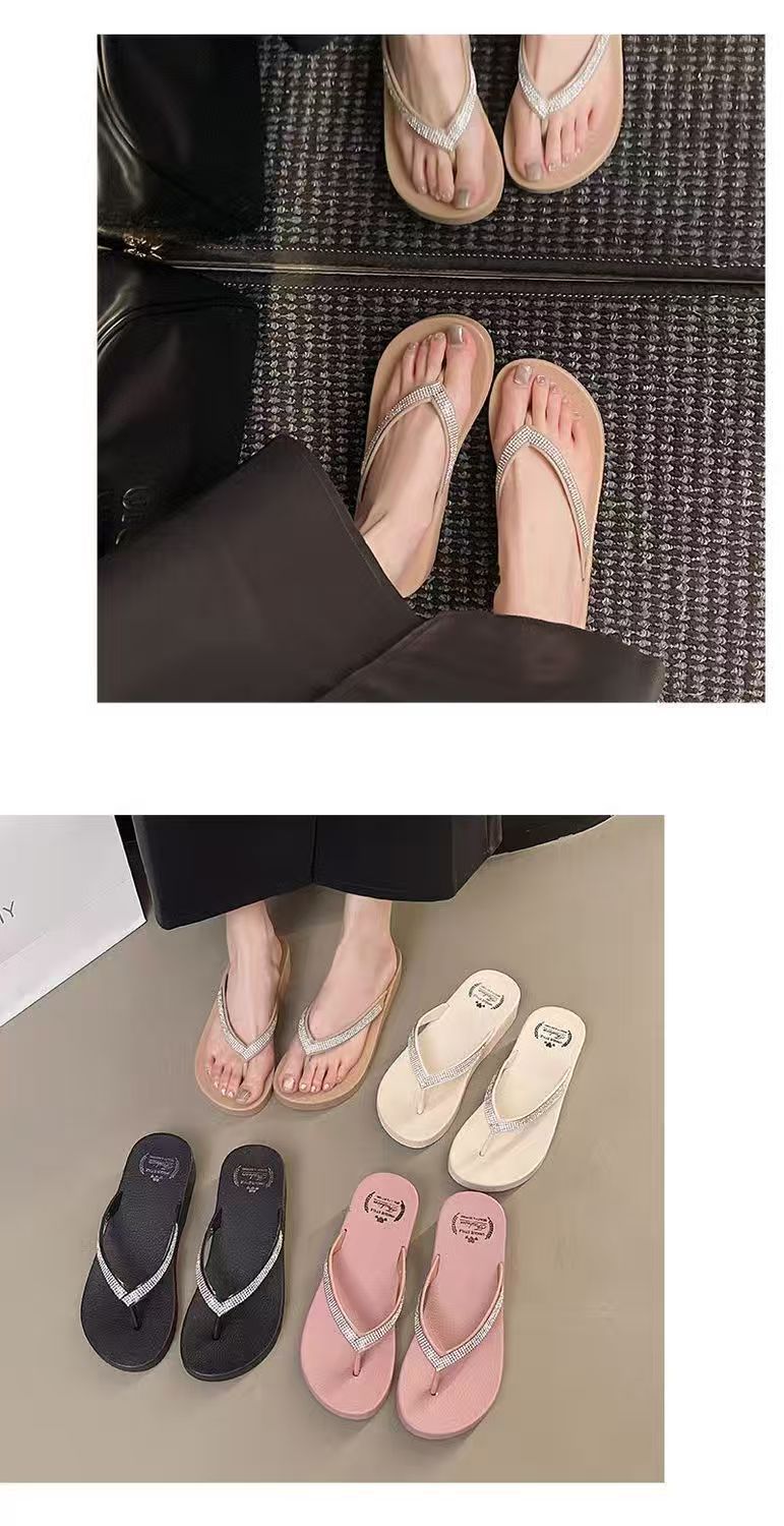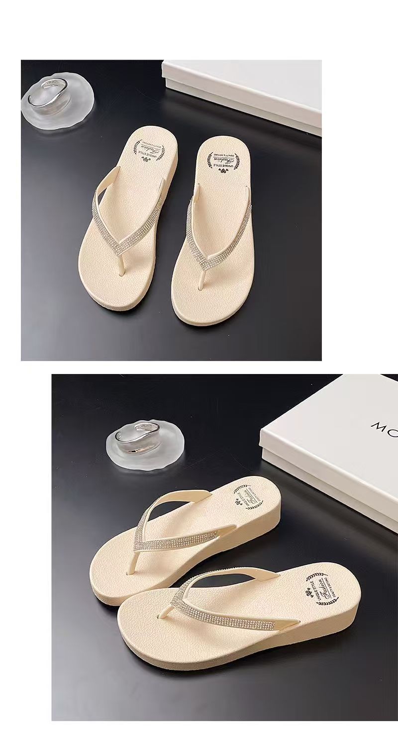여성용 패셔너블한 라인스톤 슬리퍼, 여름용 두꺼운 밑창 웨지힐 슬리퍼, 스커트가 달린 프렌치 비치 슈즈스토어 가기